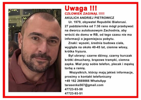 БеларусьВаршаваНовостиПольшаПроисшествияВ Варшаве пропал белорус — близкие просят помощи в поисках (НАЙДЕН)01.11.2025 14:39