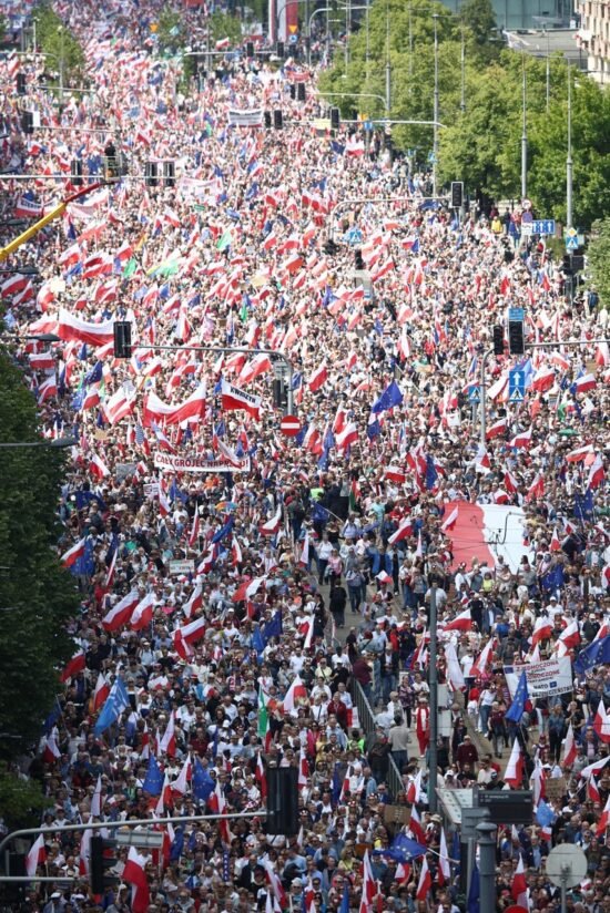 ВаршаваНовостиПолитикаПольша25 мая в Варшаве прошли два крупных марша в поддержку кандидатов на пост президента Польши — собрались сотни тысяч человек25.05.2025 18:07
