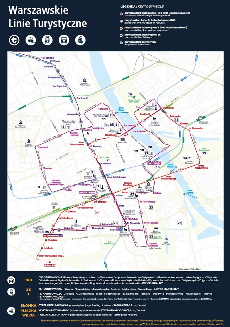 - „PLISZKA”: Most Poniatowskiego (nabrzeże) – Stadion Narodowy (plaża)
