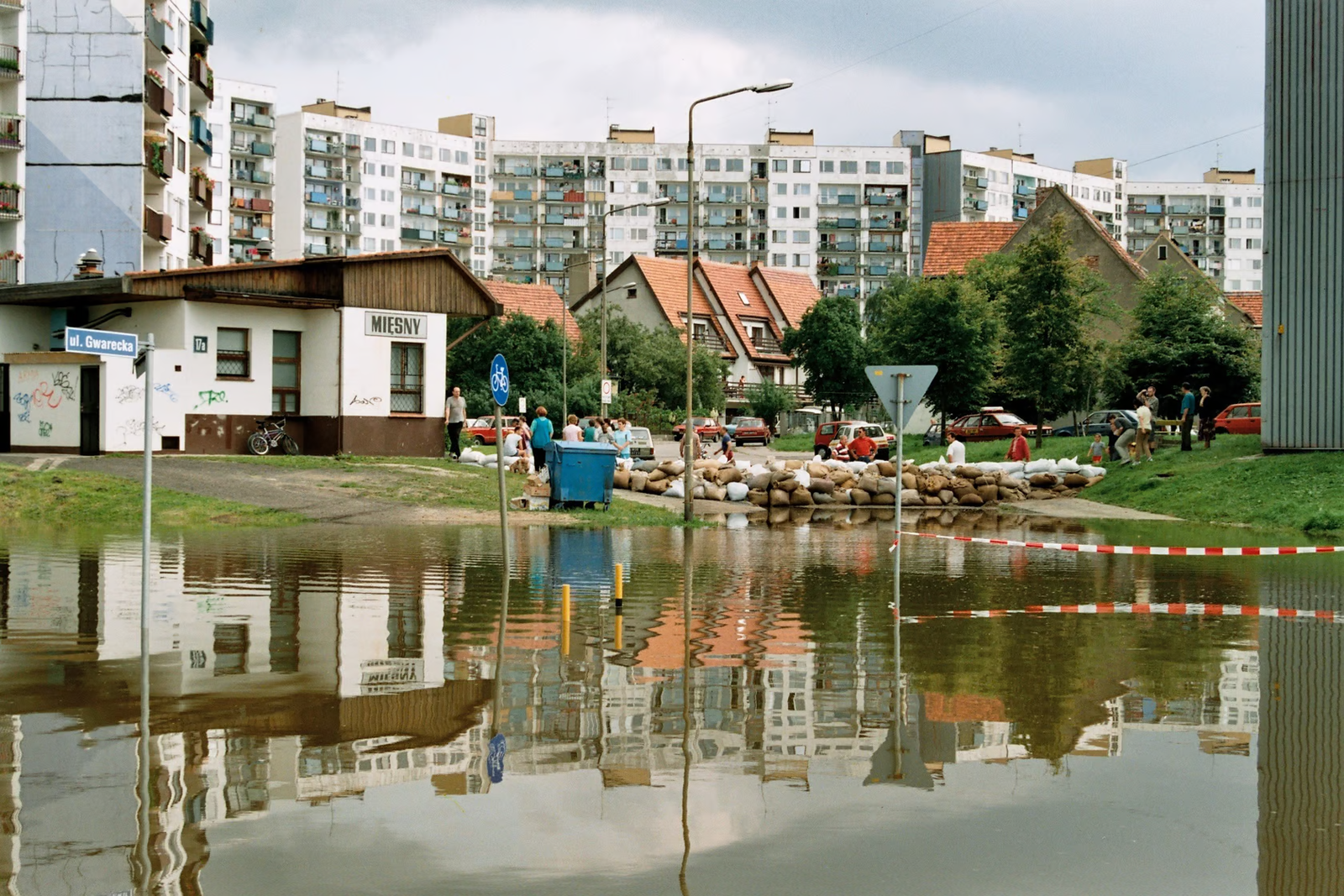 Почти 40% Вроцлава оказалось под водой. Жители Вроцлава боролись как могли: часами набивали мешки с песком (по подсчетам Вроцлавской мэрии, их было от 300 000 до 480 000) и расставляли их таким образом, чтобы хоть немного ограничить доступ к воде. В некоторых местах, например в Бискупине, это удалось. На затопленной улице Piłsudskiego мужчина на бульдозере перевозил женщин в ярких летних платьях в ковше своей машины, жители Козанува выгуливали собак в переходах между многоквартирных домов, во многих частях города на крышах домов жарили гриль, потому что не было электричества и приходилось что-то делать с мясом из размороженных холодильников.