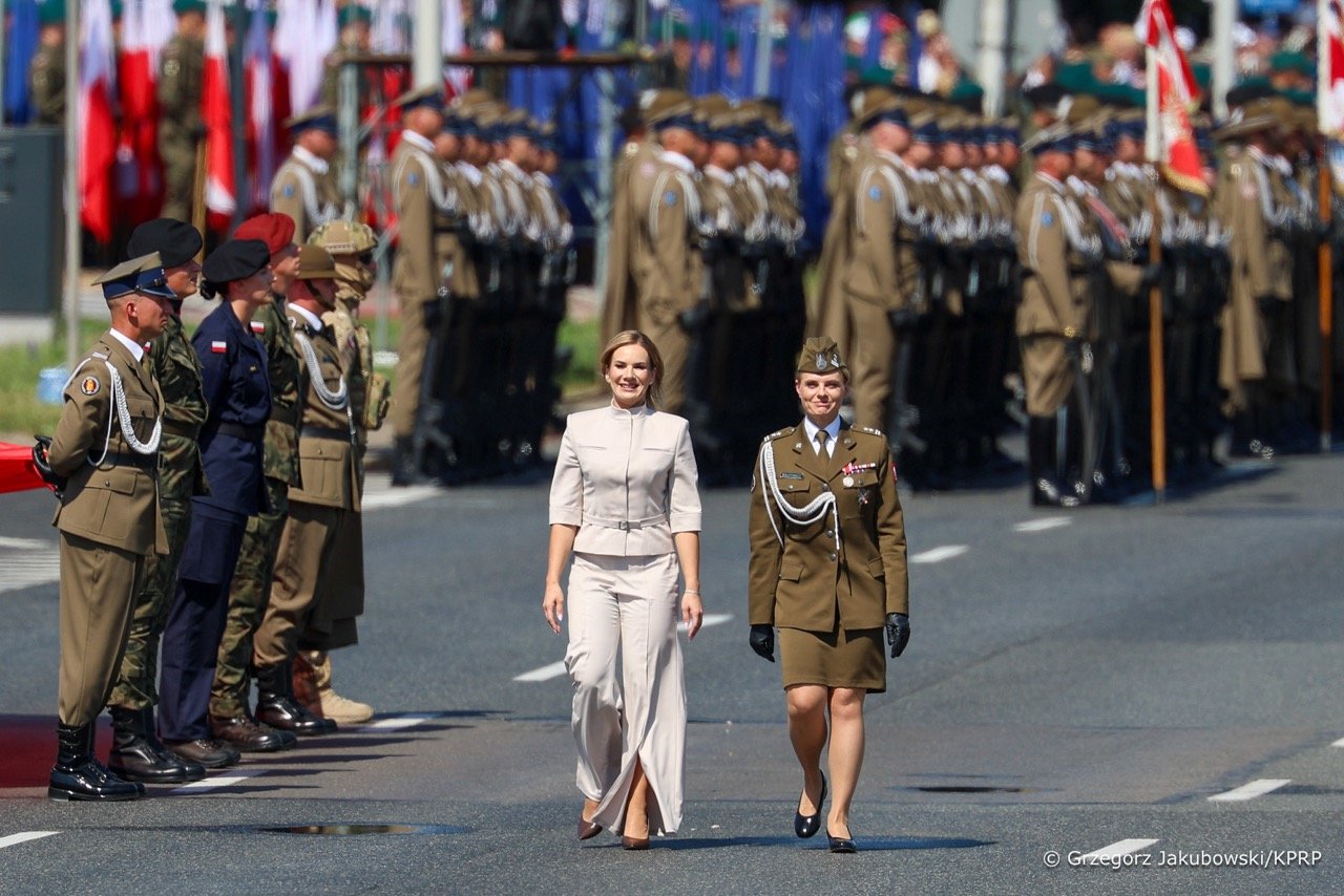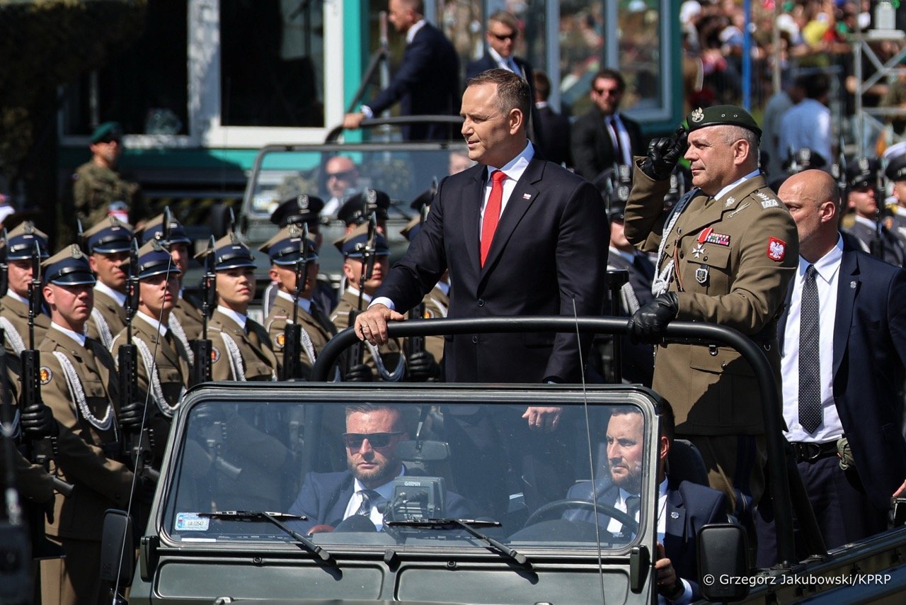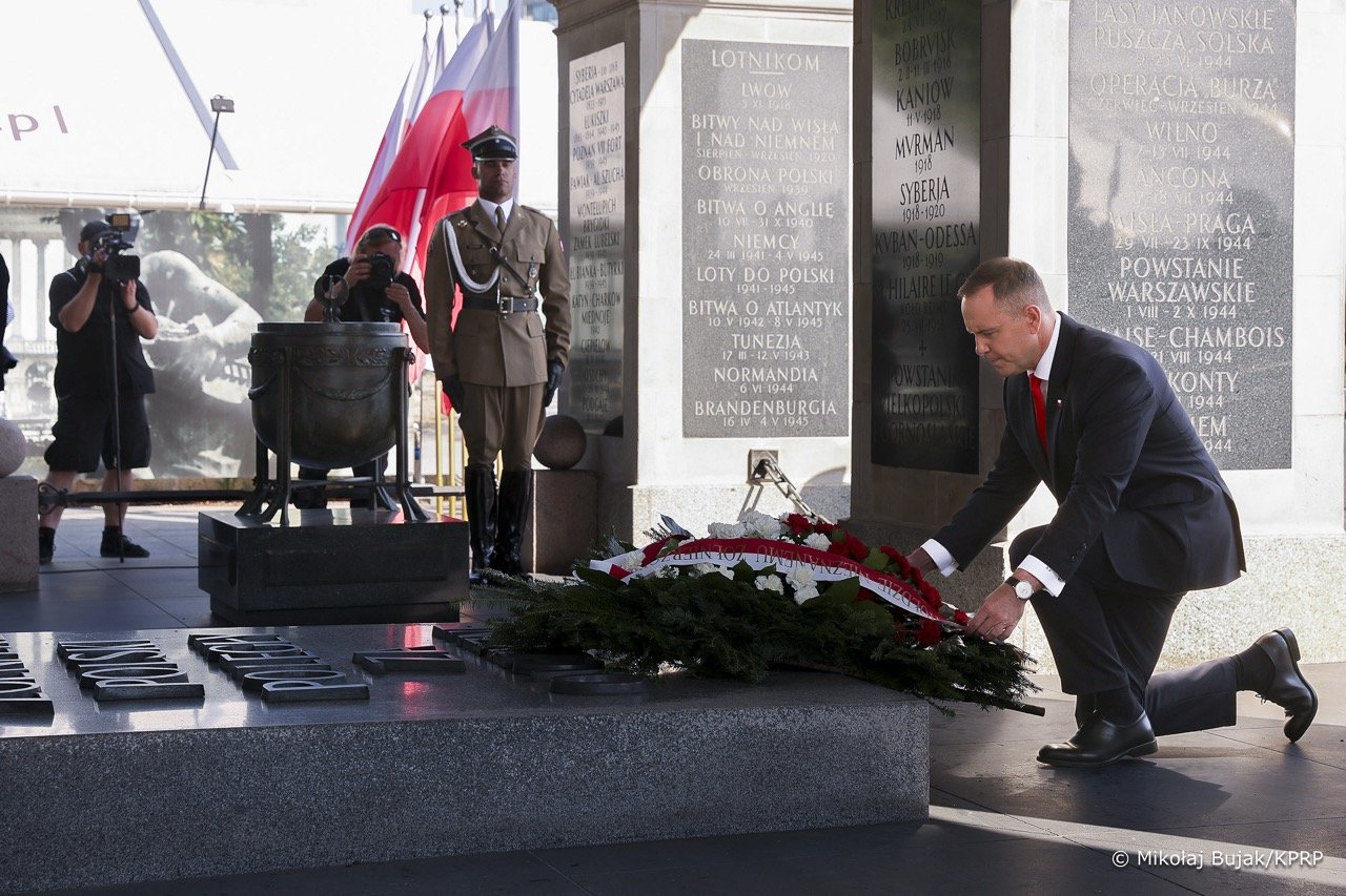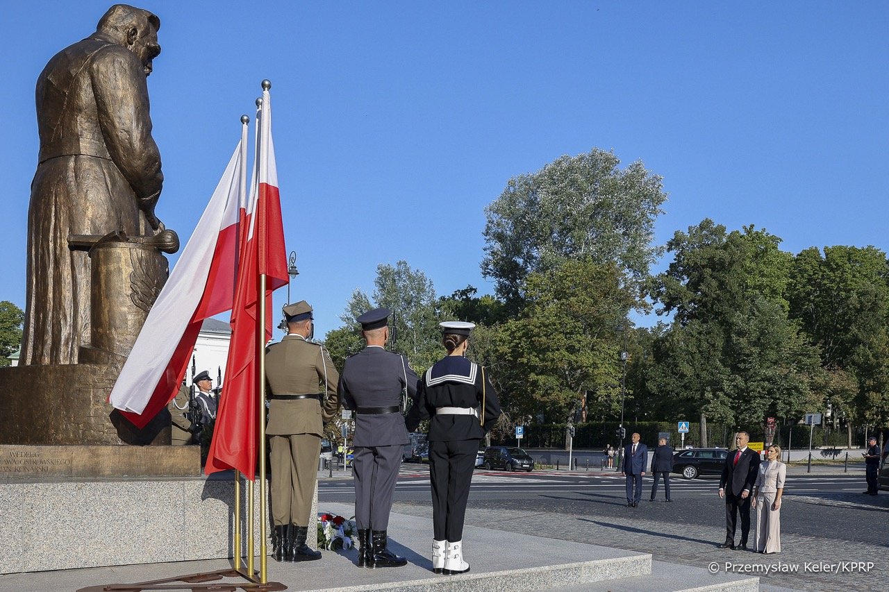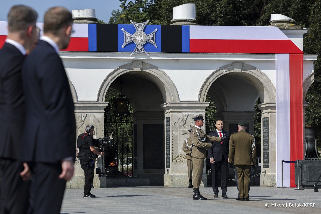 Сегодня утром президент Республики Польша принял участие в торжественной смене почётного караула у Могилы Неизвестного Солдата. Его сопровождала супруга Марта Навроцкая. В ходе церемонии, на которой присутствовали высшие представители государственной власти, был поднят государственный флаг, а также исполнен и исполнен государственный гимн.