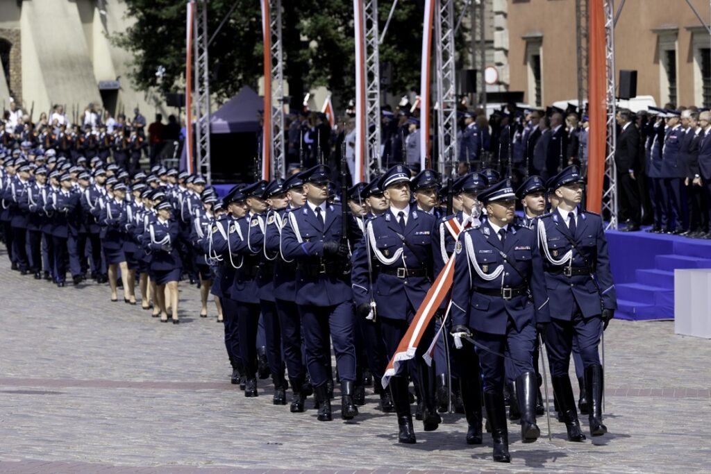 Церемония на Замковой площади завершится торжественной перекличкой, после которой последует парад полицейских подразделений и шествие по улицам: Podwale, Piekarska, Zapiecek, Rynek Starego Miasta, Nowomiejska, Barbakan, Nowomiejska, Freta и Rynek Nowego Miasta.