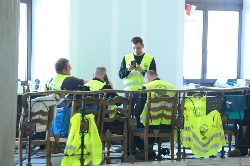 Бастующие фермеры провели все выходные в Сейме. Они спят на ковриках, разложенных на полу. Депутаты помогали им продуктами, а сегодняшнего дня фермеры будут принимать только воду.