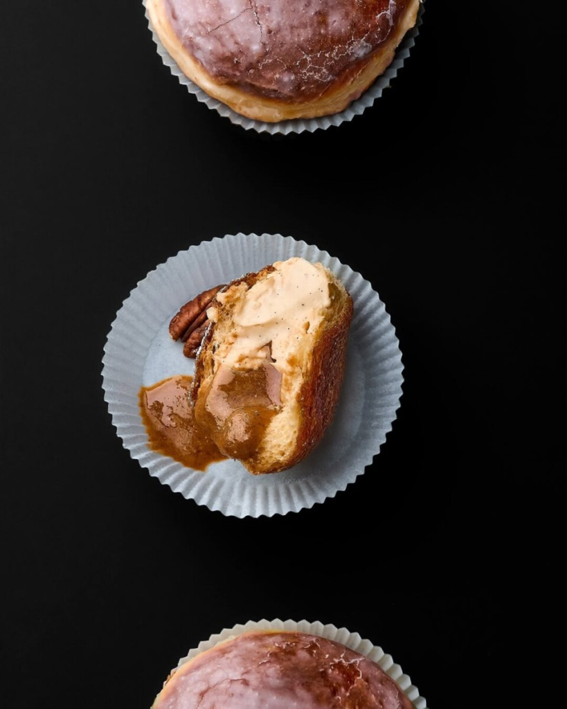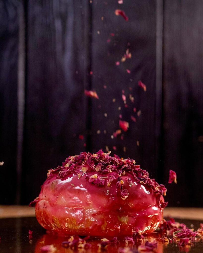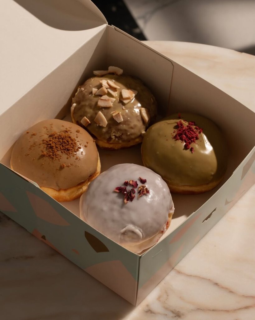 DESEO — их отличительной чертой являются идеальные монопорции. Deseo для Жирного Четверга предлагает, среди прочего: пончик с самым модным вкусом этого сезона — Дубайский шоколад. В их витрине также представлены варианты со вкусами карамель-тонка, а также кокоса и маракуйи.