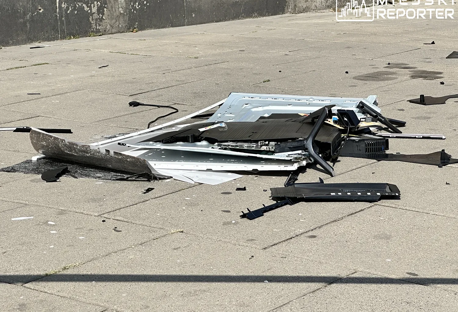Инцидент произошёл на прошлой неделе, 29 августа, в районе пересечения улиц Nowowiejskiej и Waryńskiego. По информации пресс-секретаря окружной прокуратуры Варшавы, Петра Антония Скибы, телевизор упал на тротуар в опасной близости от проходивших мимо отца и его несовершеннолетней дочери. К счастью никто не пострадал.