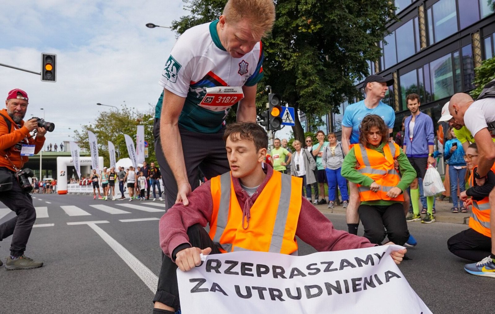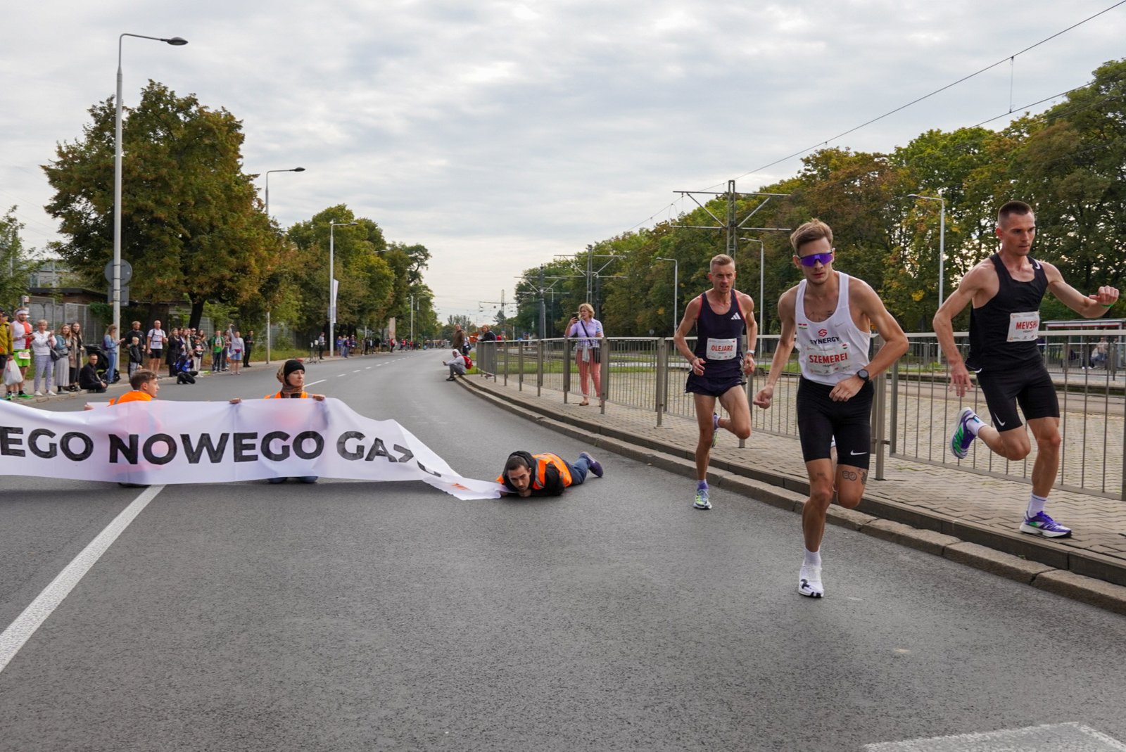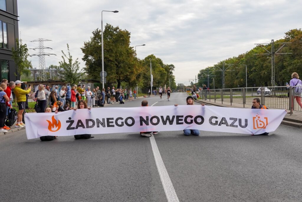 На 10-м километре марафона пятеро активистов из группы «bombelki» перекрыли маршрут забега, сев на дорогу с плакатом, на котором было написано: «Нет новому газу». Бегуны, достигшие этого участка, вынуждены были оббегать препятствие, в то время как другие бегуны, с поддержкой зрителей, останавливались и оттаскивали активистов на обочину.