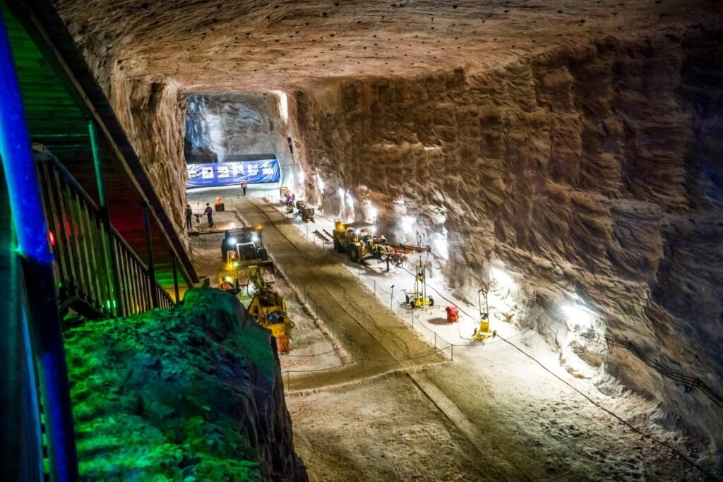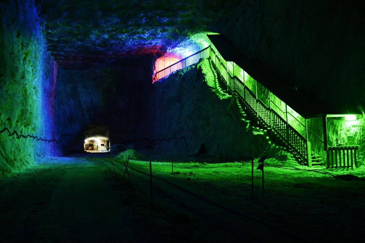 Путешествие начинается с захватывающего спуска в шахту на лифте со скоростью 6 м/с. Туристы оказываются в действующей шахте, где до сих пор добывают природную каменную соль возрастом более 250 миллионов лет.