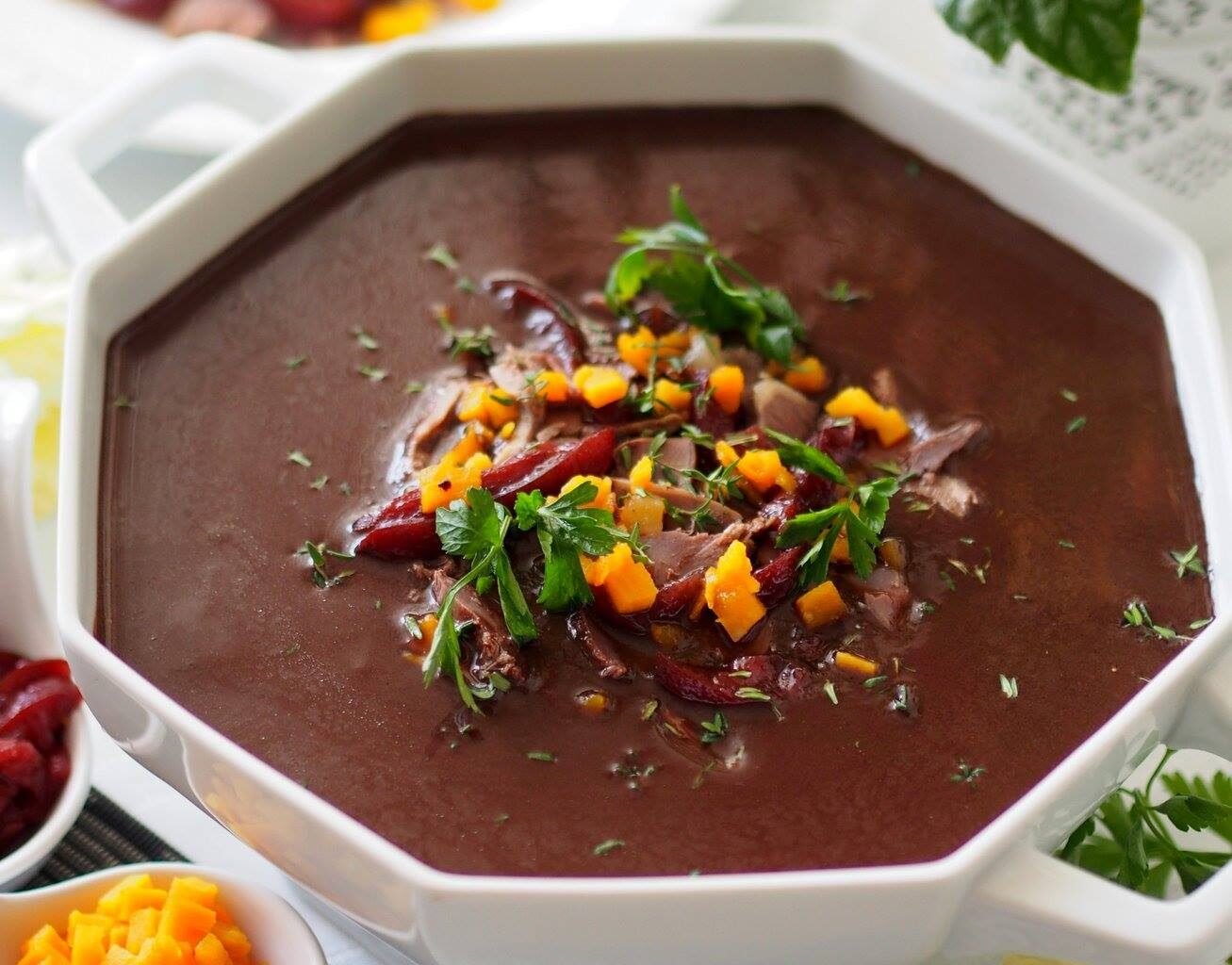 Чернина — это не просто суп, а настоящая кулинарная традиция Польши. Он готовится из утиной или гусиной крови, которая консервируется с уксусом, чтобы не свернуться. Суп варится на ароматном бульоне, а его характерный вкус достигается благодаря сочетанию сухофруктов, специй, таких как гвоздика и душистый перец. Название блюда происходит от польского слова czarny, что переводится как «чёрный», что связано с насыщенным тёмным цветом супа.