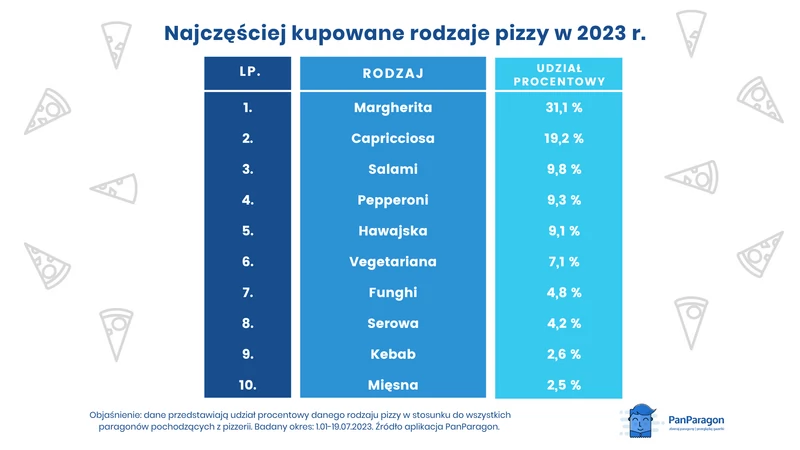 Приложение для поиска акций и хранения чеков PanParagon проанализировали имеющиеся данные и выяснили предпочтения поляков при выборе пиццы в период с января по июль 2023 года.