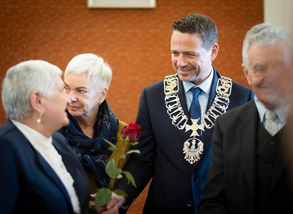 Каждый раз с большим удовольствием вручаю за «Многолетнюю семейную жизнь», прожившим в браке 50 лет, награждаемые Президентом Республики Польша. Сегодня 65 церемония. Такой праздник. Я хотел бы поздравить все 2152 пары, с которыми я имел удовольствие познакомиться за эти годы, и пожелать им здоровья и любви на долгие годы совместной жизни. Всего наилучшего!», — отметил мэр Варшавы.