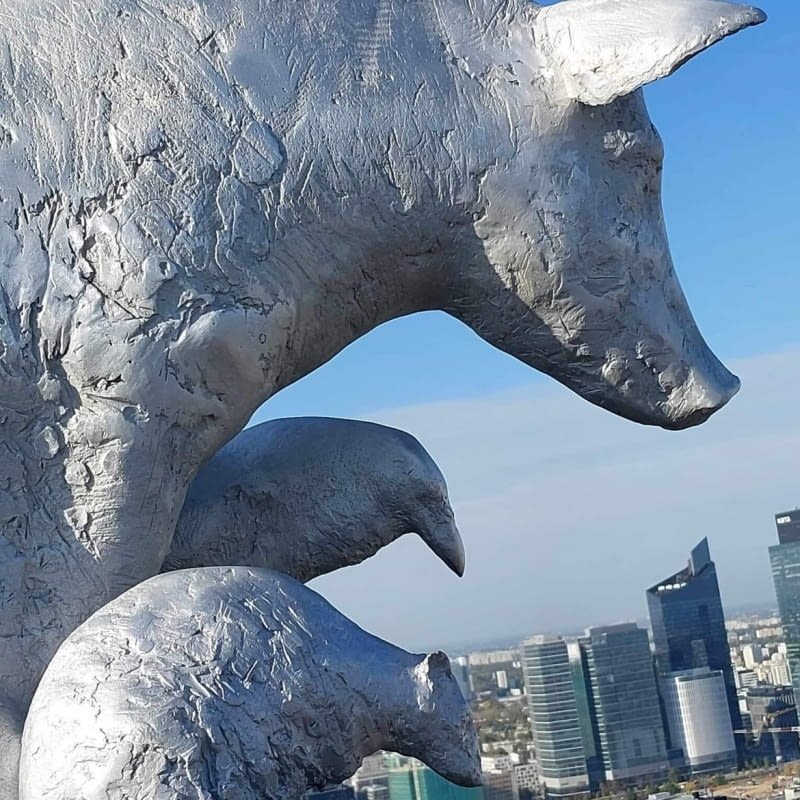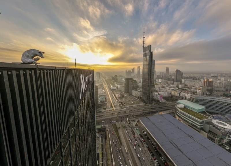 На крыше отеля Marriott появилась скульптура свиньи, ворона и крысы, которые свысока наблюдают за жителями Варшавы. Скульптура является превью выставки «Let’s Watch», которая проходит в фойе отеля Marriott.