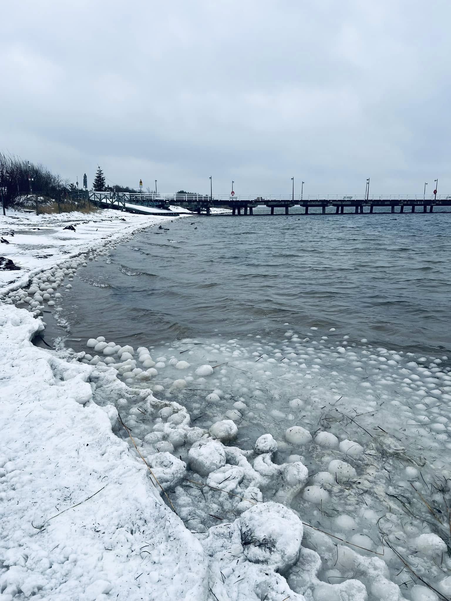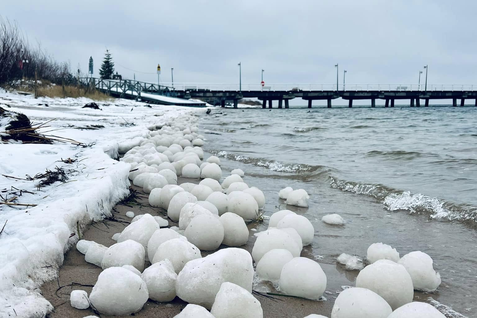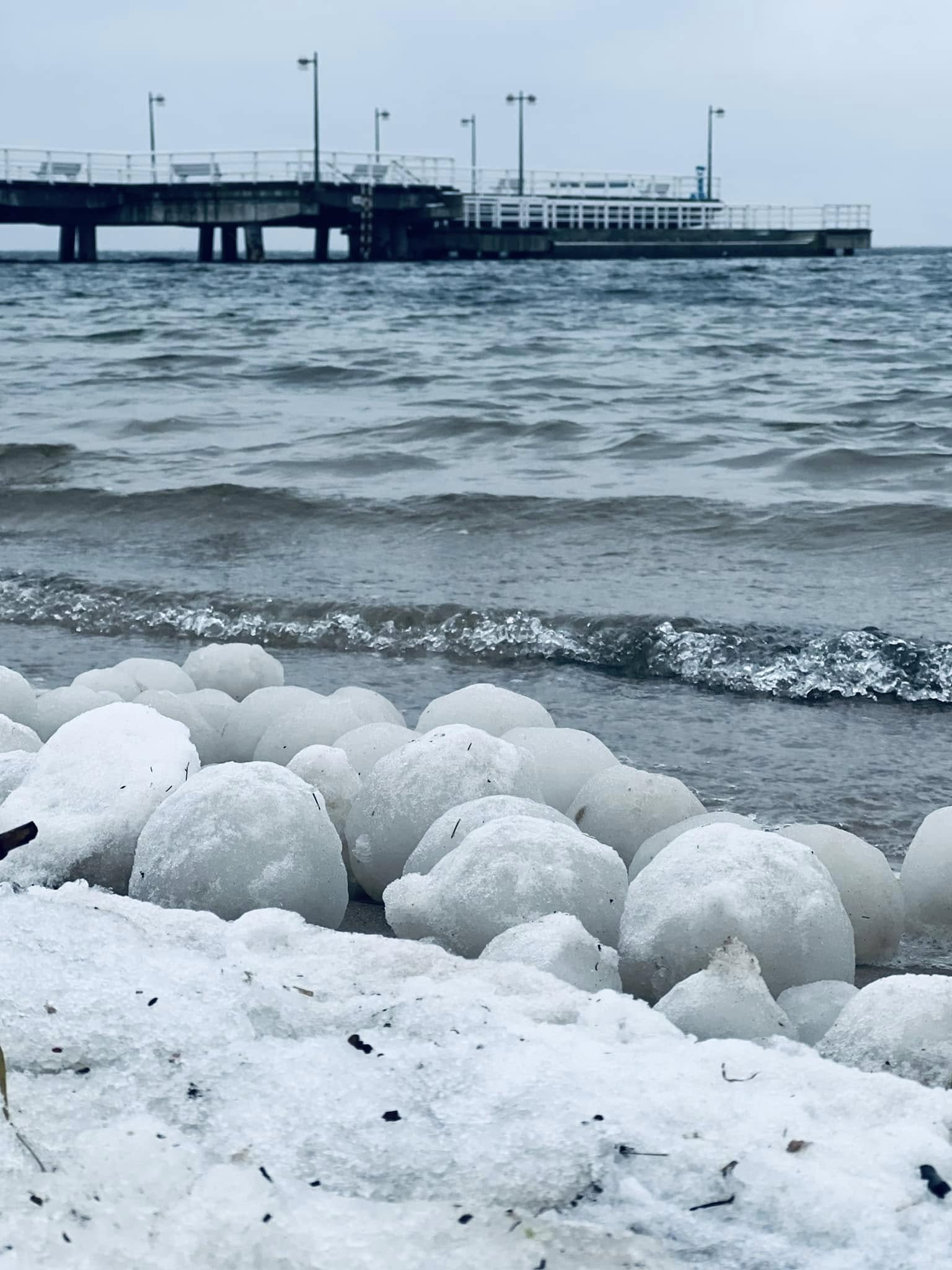 В Польшу пришла настоящая зима, а вместе с ней появилось необыкновенное явление. Речь идёт о ледяных шарах на побережье Балтийского моря. Эти природные творения могут достигать внушительных размеров – некоторые из них достигают даже нескольких десятков сантиметров в диаметре.
