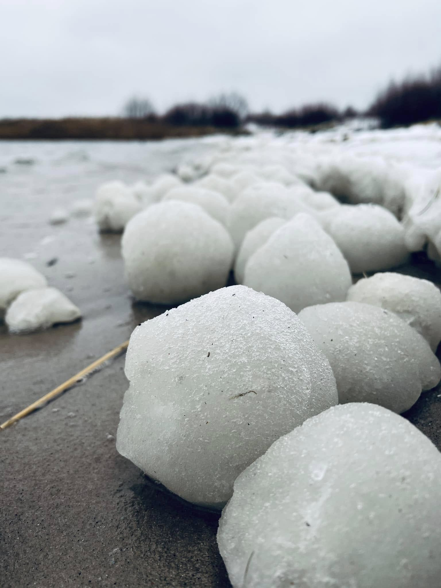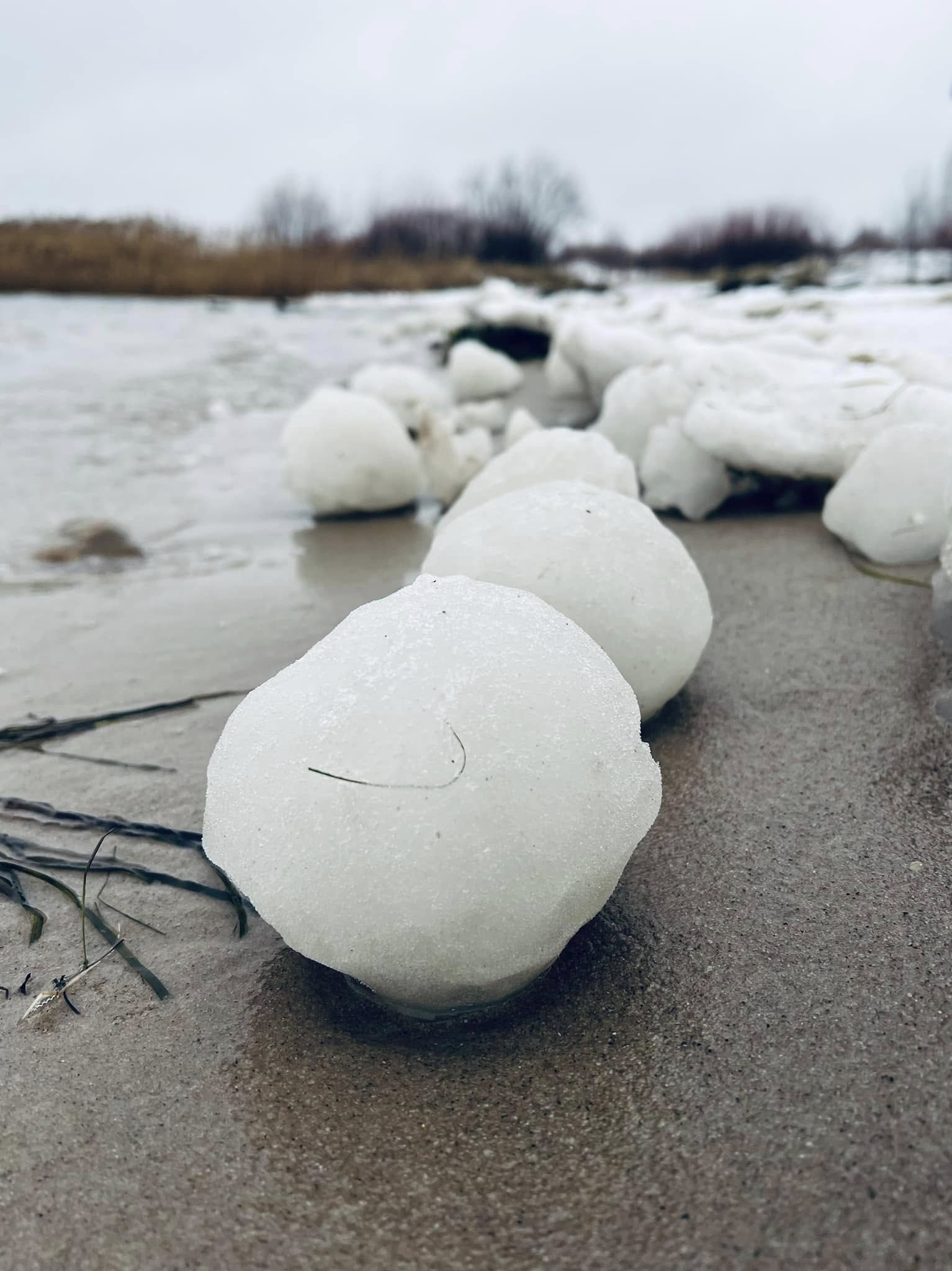 Ледяные шары появились на побережье Балтийского моря в Ястарне (Поморское воеводство). Увидеть подобное явление — настоящая редкость. Чтобы они произошли, природа должна соответствовать ряду весьма специфических атмосферных условий. Для возникновения этого явления необходима низкая температура, умеренный ветер и соответствующее наличие воды, льда и снега в море. Процесс формирования ракушек начинается с небольших комочков льда и снега, которые уносятся морскими волнами.