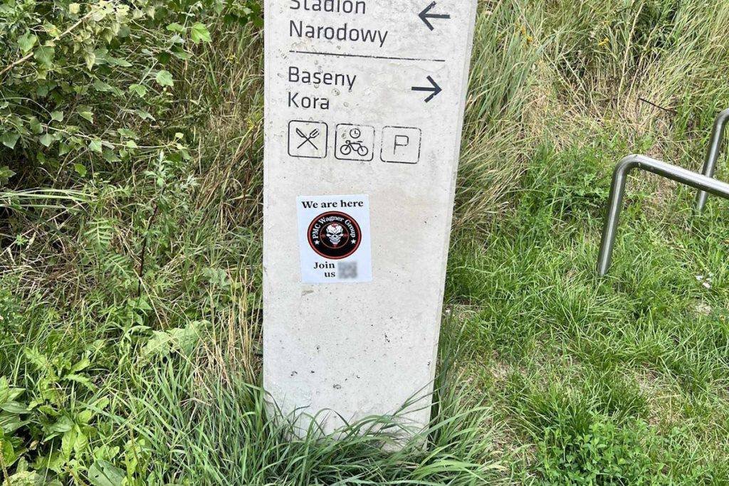 В разных частях столицы появились наклейки, призывающие вступить в Группу Вагнера. Одна из наклеек была замечена недалеко от Варшавского Национального стадиона.