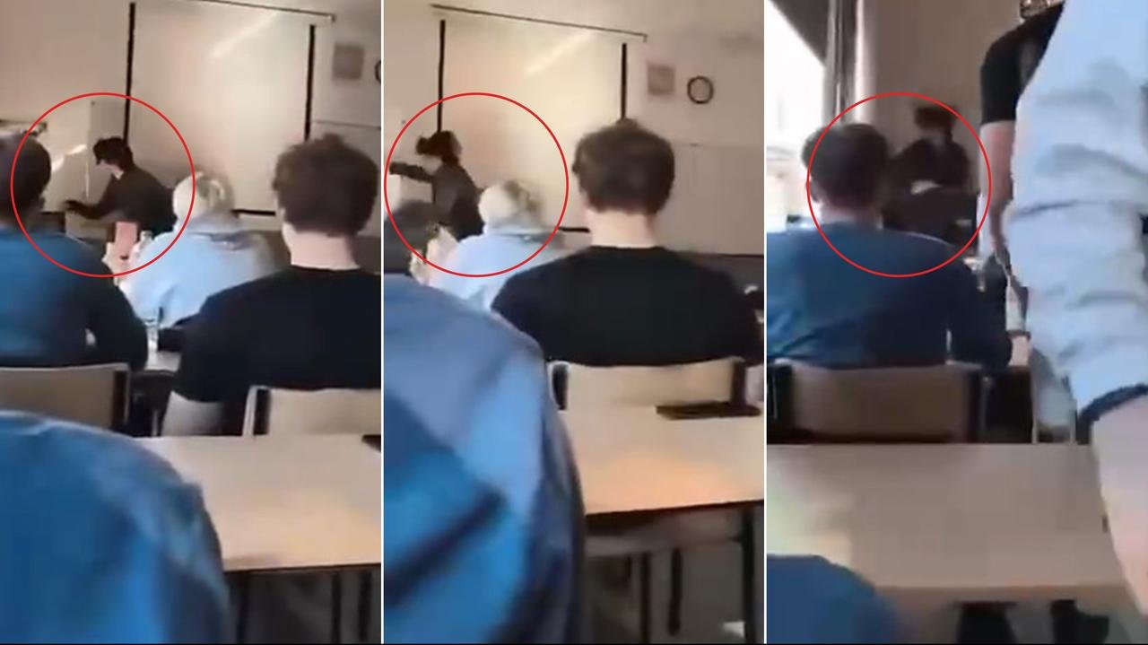 Конфликт обострился: ученик перешёл на «ты» и заявил, что мнение учителя «никого не интересует». Несмотря на замечания, он встал из-за парты и подошёл к учительскому столу. Педагог предупредил, что вызовет полицию, и потребовал, чтобы подросток сел на место или покинул класс. В ответ ученик пнул его и набросился с кулаками.