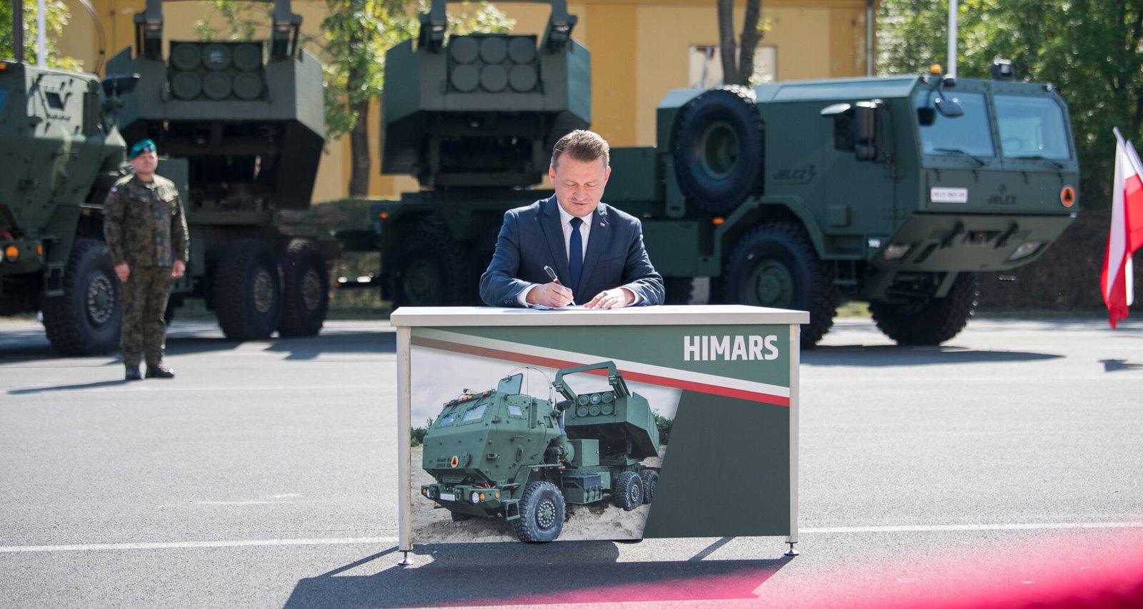 «Я одобрил соглашение о приобретении 486 пусковых установок HIMARS для Войска Польского. Вместе с пусковыми установками, заказанными в 2019 году, Войско Польское будет иметь 500 пусковых установок HIMARS. (…) Оппозиция говорит, что это уже слишком. Нет, дамы и господа, это не слишком много. Ровно настолько, насколько вам нужна пусковая установка, чтобы реально сдерживать агрессора. Давайте осознаем, что правители Кремля решили восстановить Российскую империю. Наша цель — привести к ситуации, при которой сильная польская армия будет реально сдерживать агрессора. И мы это сделаем. Как я уже неоднократно заявлял, в течение двух лет Войско Польско будет иметь самую сильную сухопутную армию, и одной из важнейших составляющих этой армии будет реактивная артиллерия», — сказал министр Мариуш Блащак во время утверждения соглашений о вооружениях в Торуни.