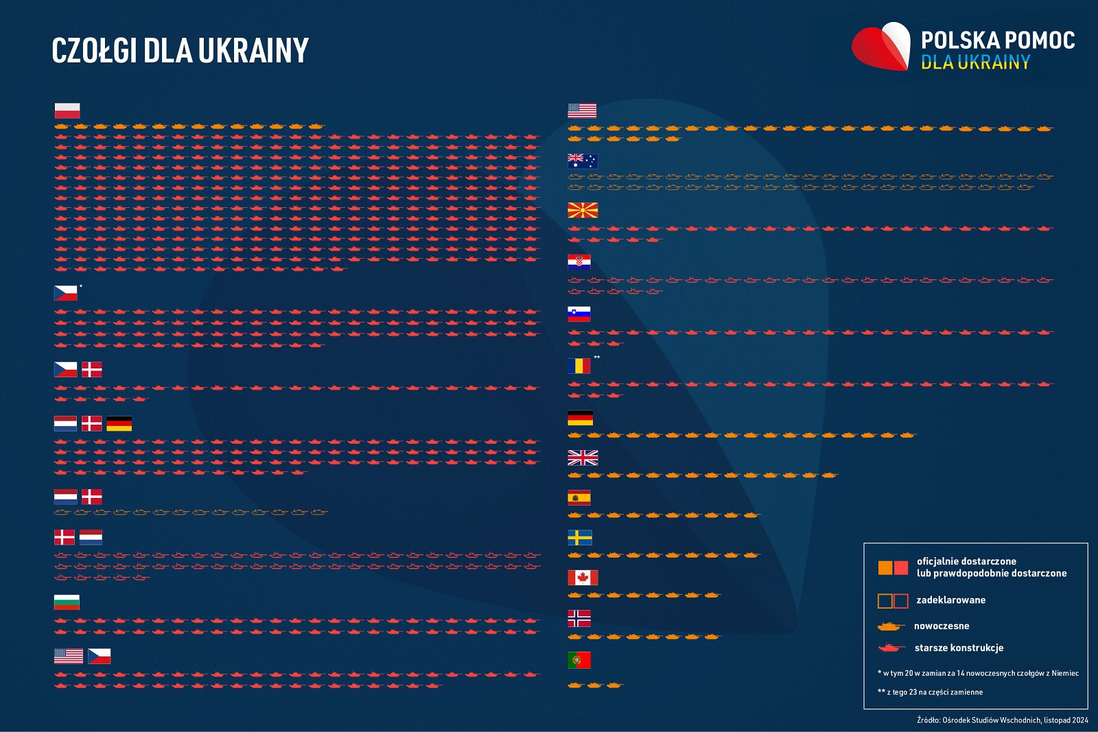 Из 800 танков, полученных Украиной, более 350 — из Польши. Это больше, чем передали США, Великобритания, Германия, Швеция, Норвегия и Испания вместе взятых.