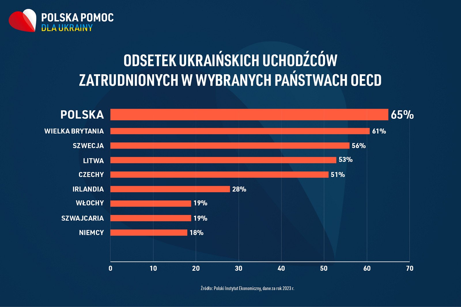 Польша дала украинским беженцам не только дом, но и работу. В Польше самый высокий уровень занятости беженцев среди стран OECD (ОЭСР) — целых 65 процентов.