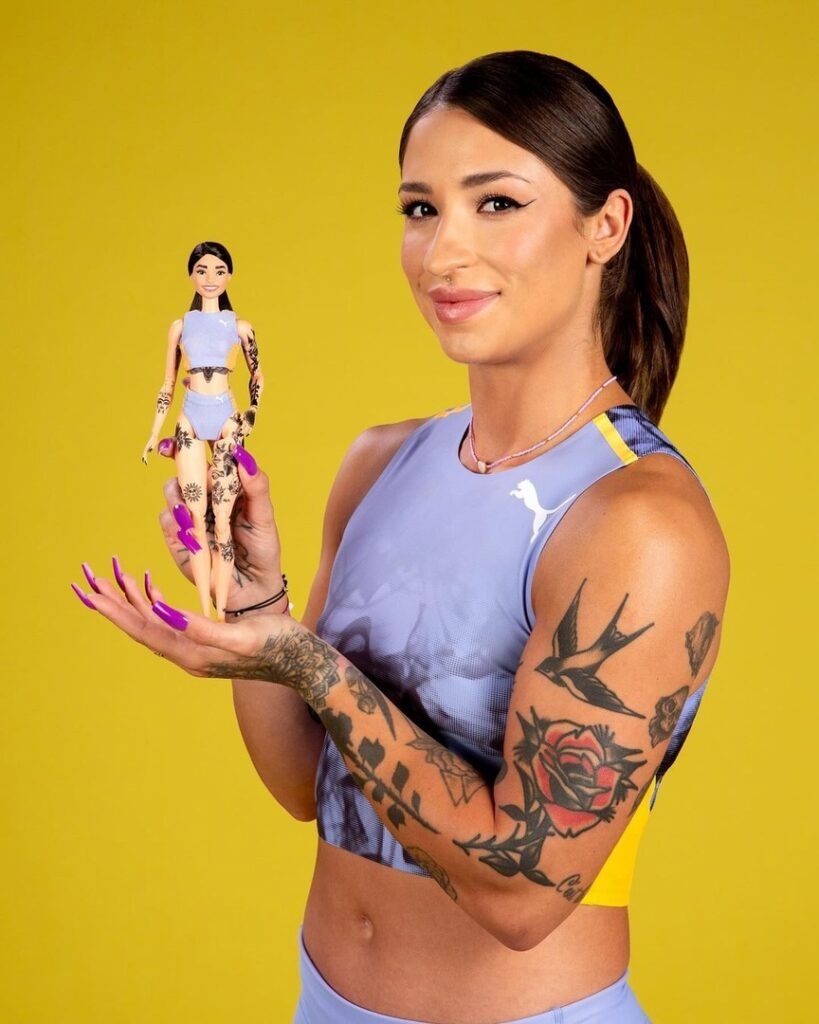 Кукла точно отражает внешность спортсменки, включая татуировки, длинные накрашенные ногти и волосы, собранные в хвост.