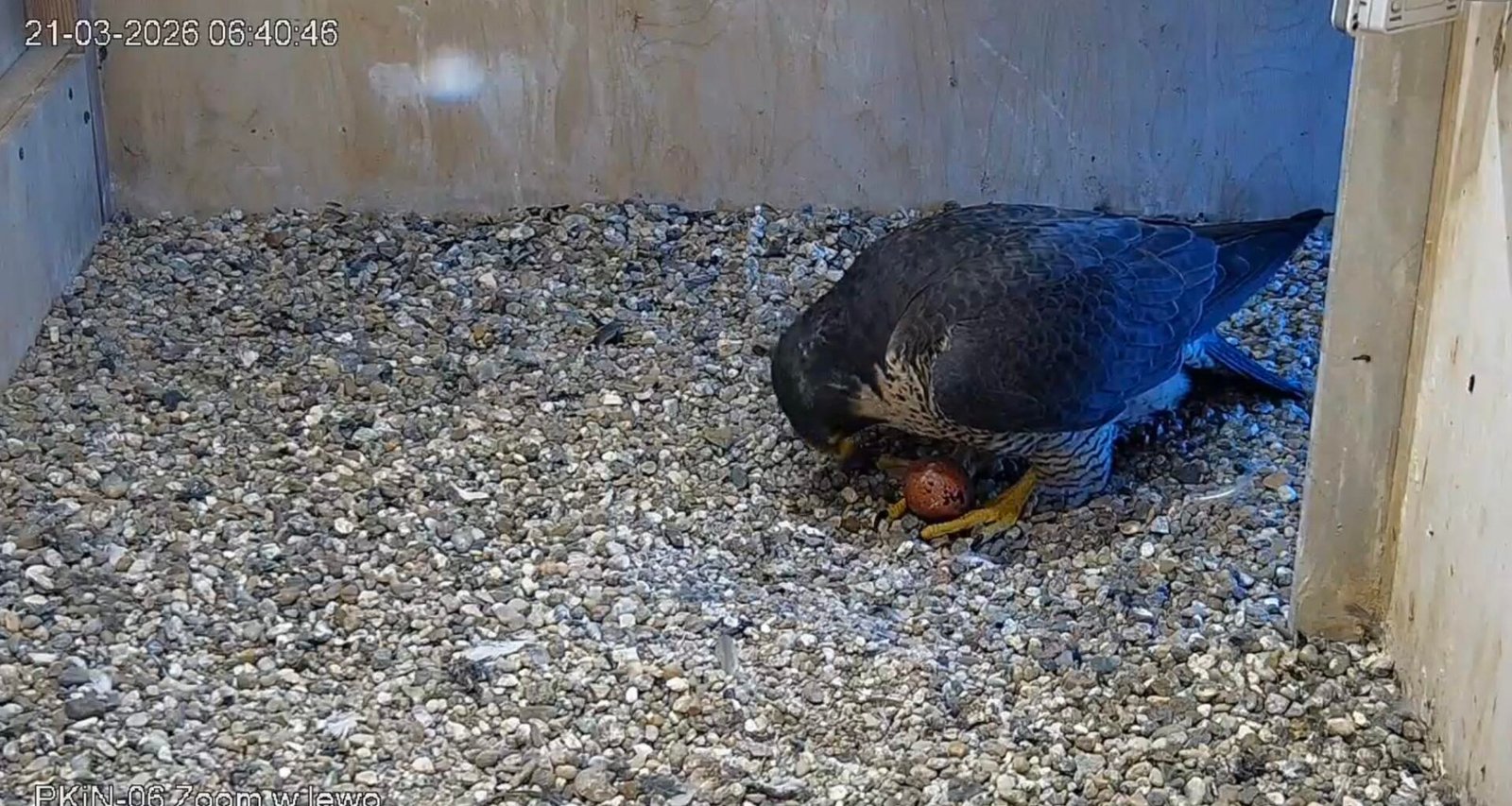 В субботу, 21 марта, не окольцованная самка отложила своё первое яйцо в гнезде на крыше Дворца культуры и науки. 23 марта было снесено 2-е яйцо. Сапсаны откладывают от 3 до 4 яиц за кладку. Инкубация длится около 30–33 дней и в основном осуществляется самкой, хотя птицы по очереди выполняют родительские обязанности.