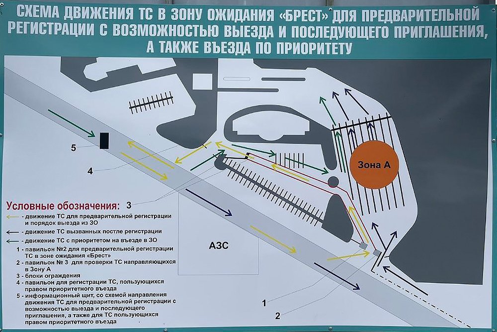 После того, как машина будет зарегистрирована в очереди для прохождения границы, у её владельца есть два варианта: можно остаться в зоне ожидания, либо уехать в любое удобное место для ожидания.