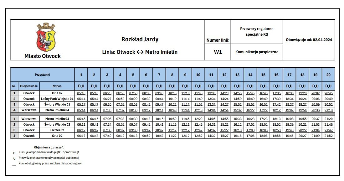 2 апреля состоялся запуск новой бесплатной скоростной автобусной линии W1, которая доставит жителей Отвоцка до станции метро «Imielin» в Варшаве.