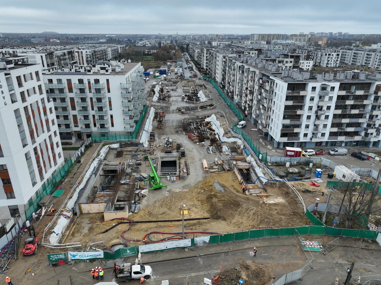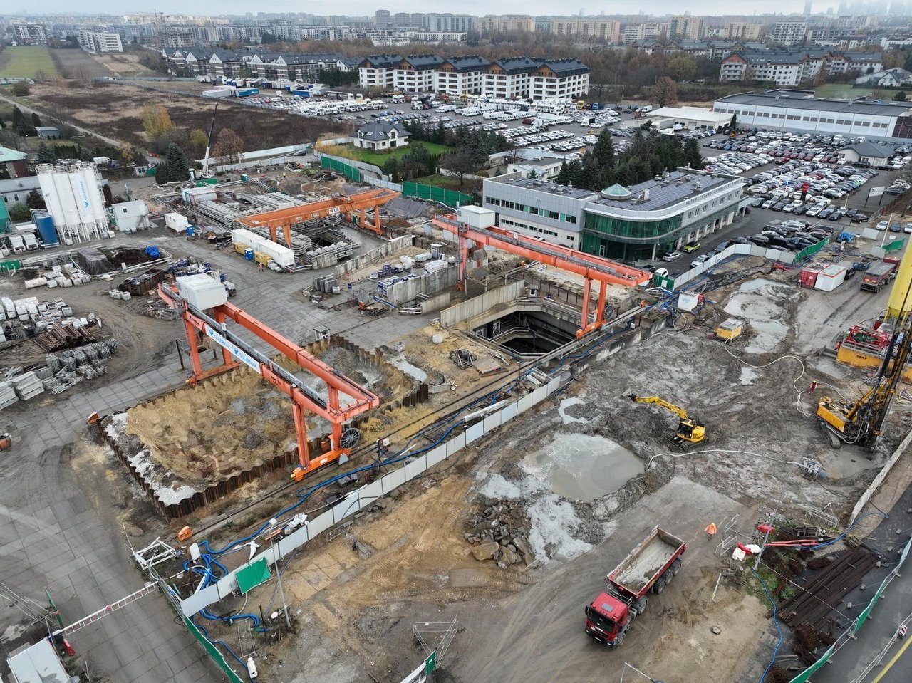 В настоящее время дисковые тоннелепроходческие машины активно роют туннели. Машина «Anna» уже преодолела более 1800 метров, а «Krystyna» продвинулась на 1200 метров. На участках станций видны пассажирские лестницы, бетонные стены и колонны.