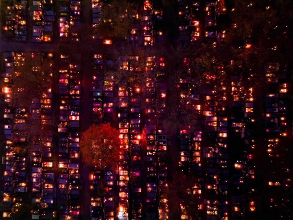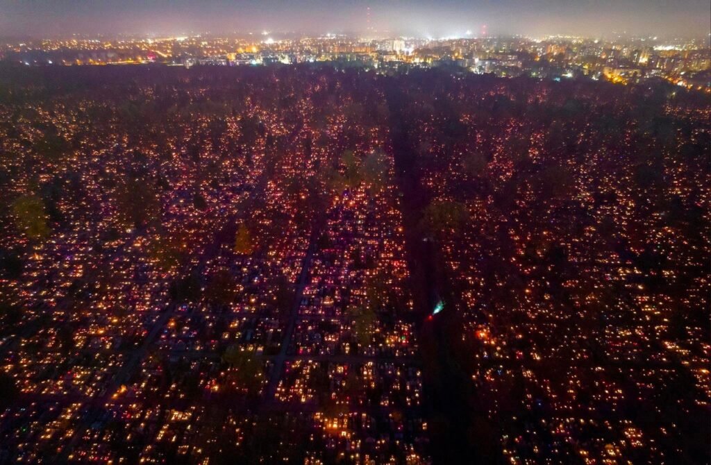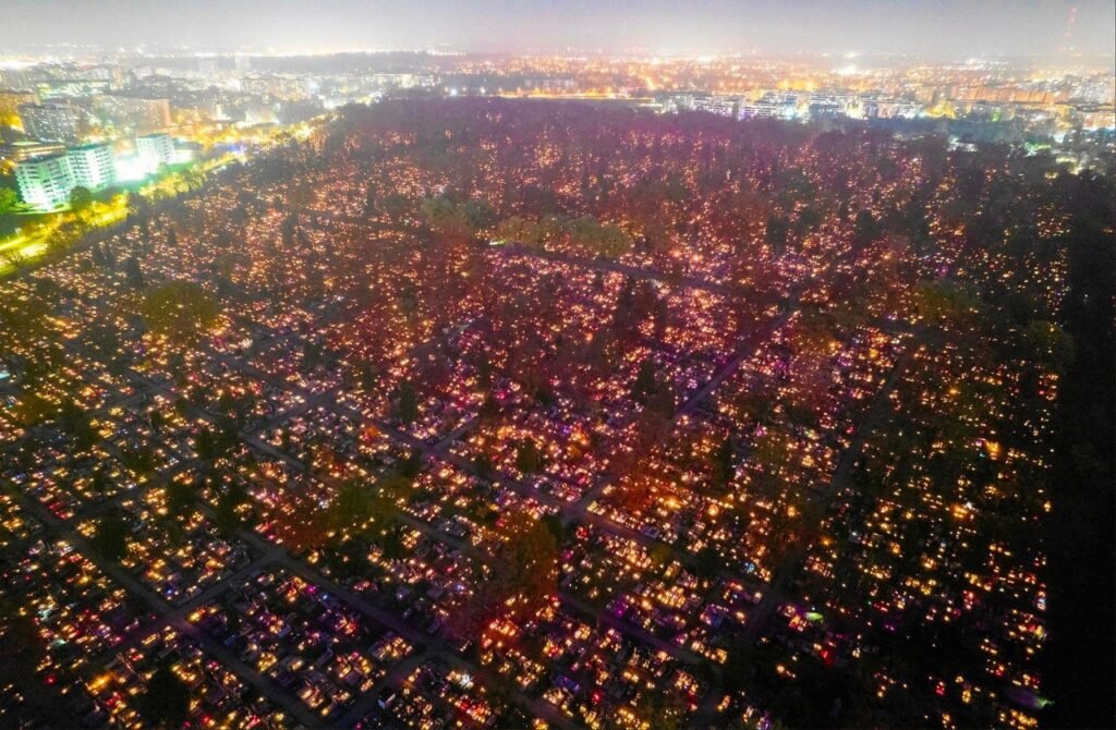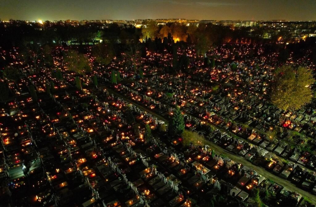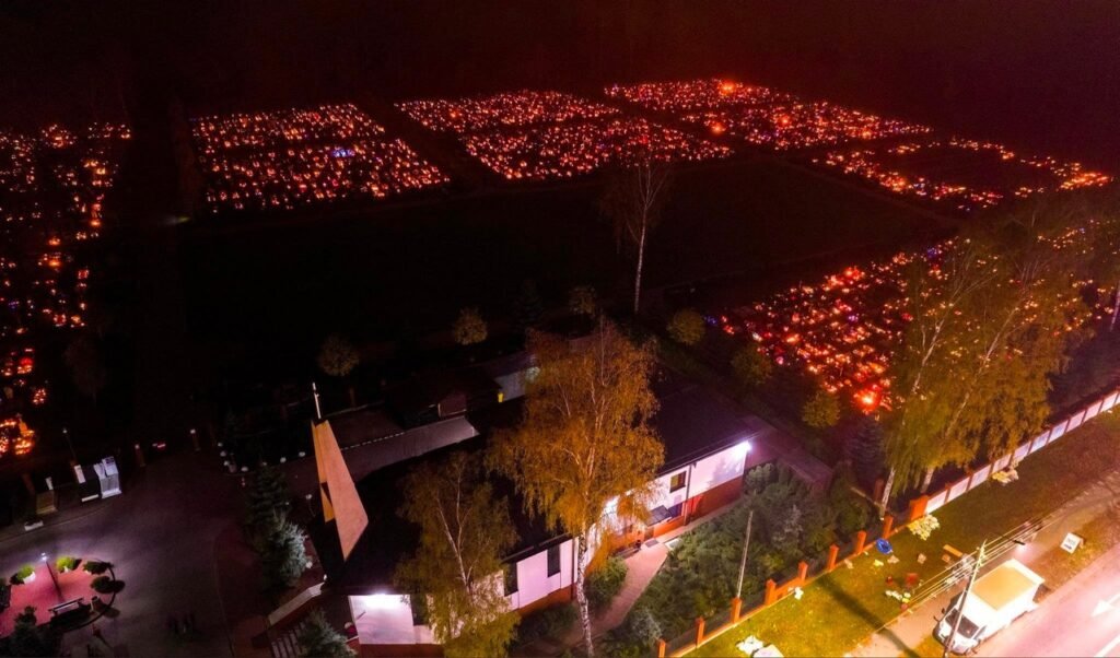 Каждый год в День Всех Святых польские кладбища выглядят очень атмосферно, особенно с высоты птичьего полёта.