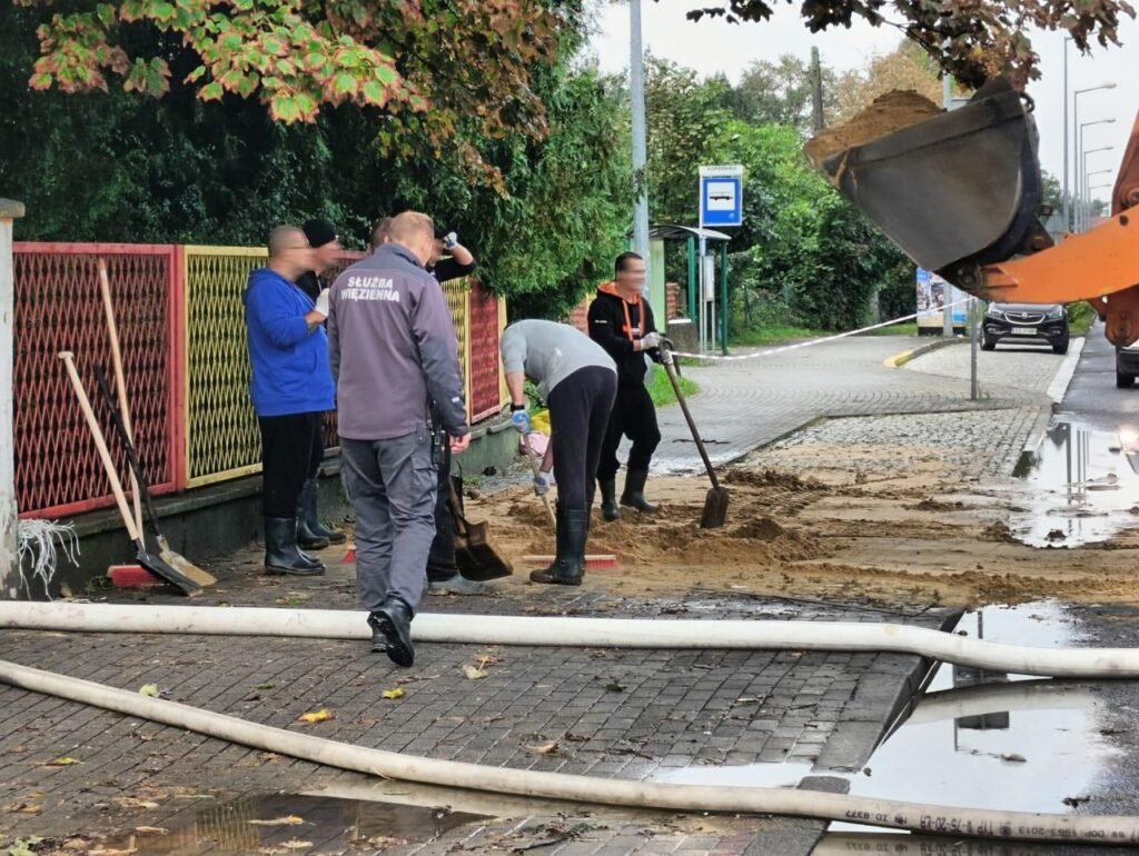 В пятницу заключённые следственного изолятора в Дзержонюве начали заполнять мешки песком, которые использовались для создания защитных насыпей от паводков. Сегодня они помогали в расчистке начальной школы № 9, пострадавшей от наводнения. Директор школы Виолетта Ухман-Хшонщ выразила благодарность и отметила, что «Благодаря им я завтра смогу приводить сюда детей и проводить уроки».