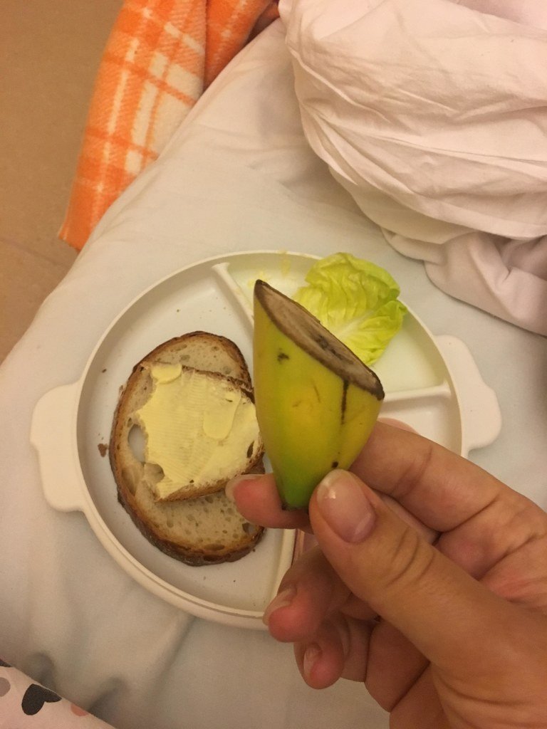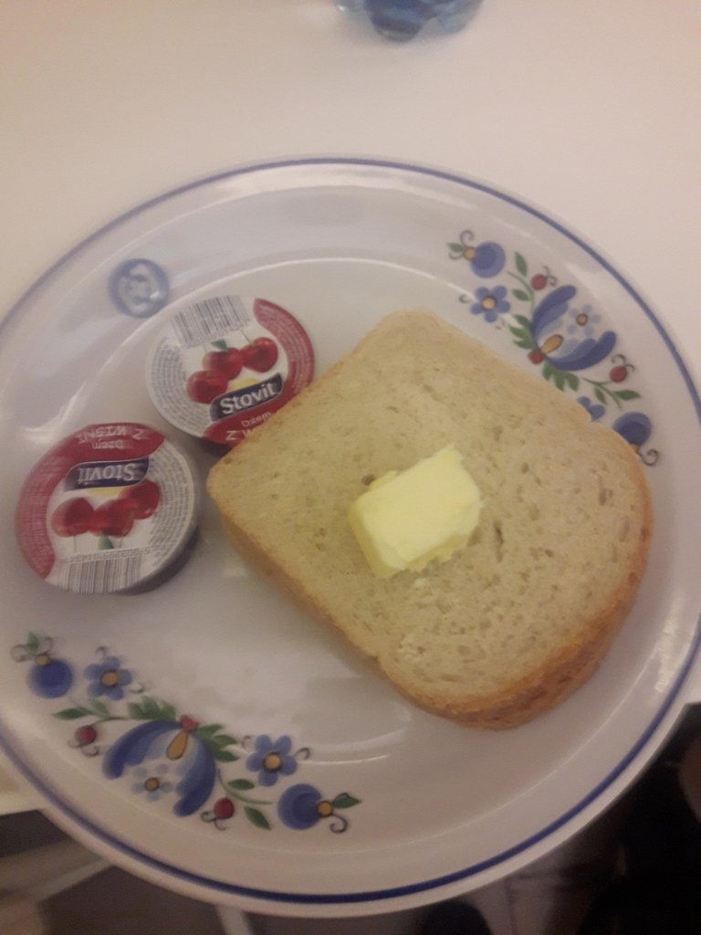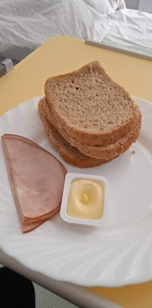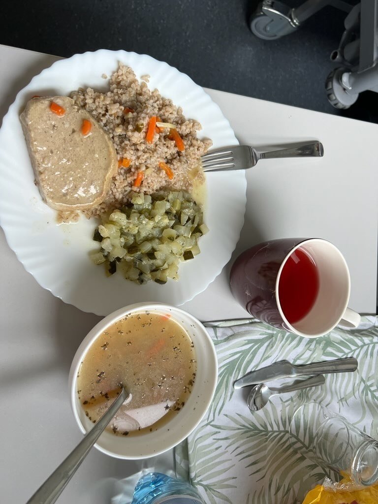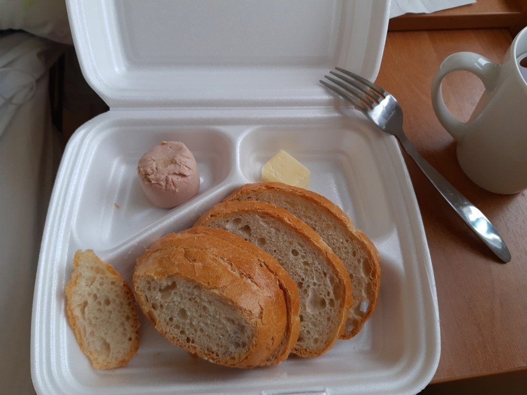На завтрак была манная каша, филе, масло, хлеб. На 2-ой завтрак бутерброд с сыром, перец и яблоко. На обед суп и свиная отбивная. Есть также дополнительные обеды для диабетиков, творог. В больницу хлеб и молочные продукты привозят каждый день, а доставка мяса и овощей два раза в неделю или ежедневно, в зависимости от потребностей. В больнице не было ни одного случая отравления.