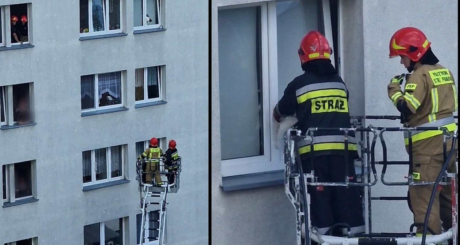 В Лодзи пожарные спасли жизнь кошке, застрявшей в приоткрытом окне