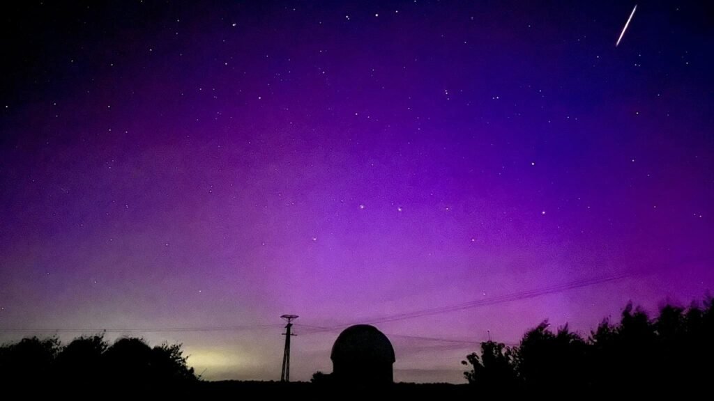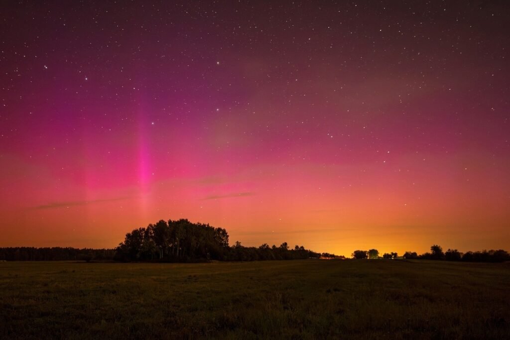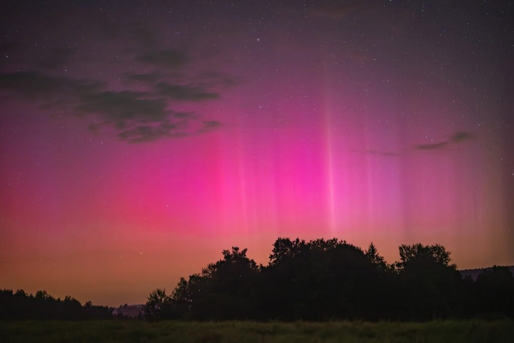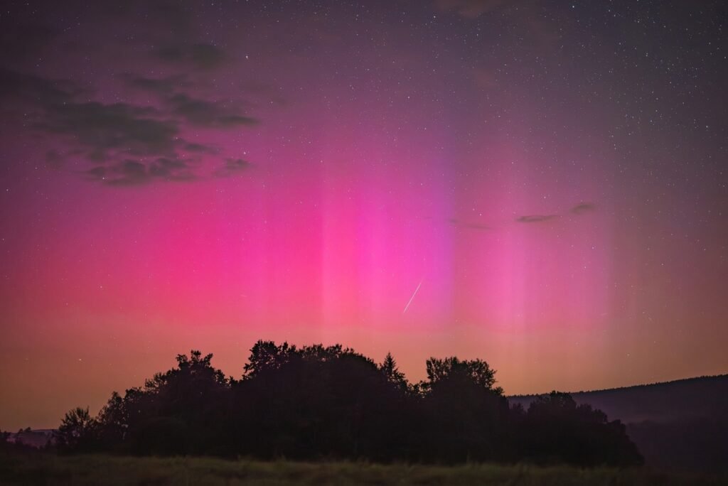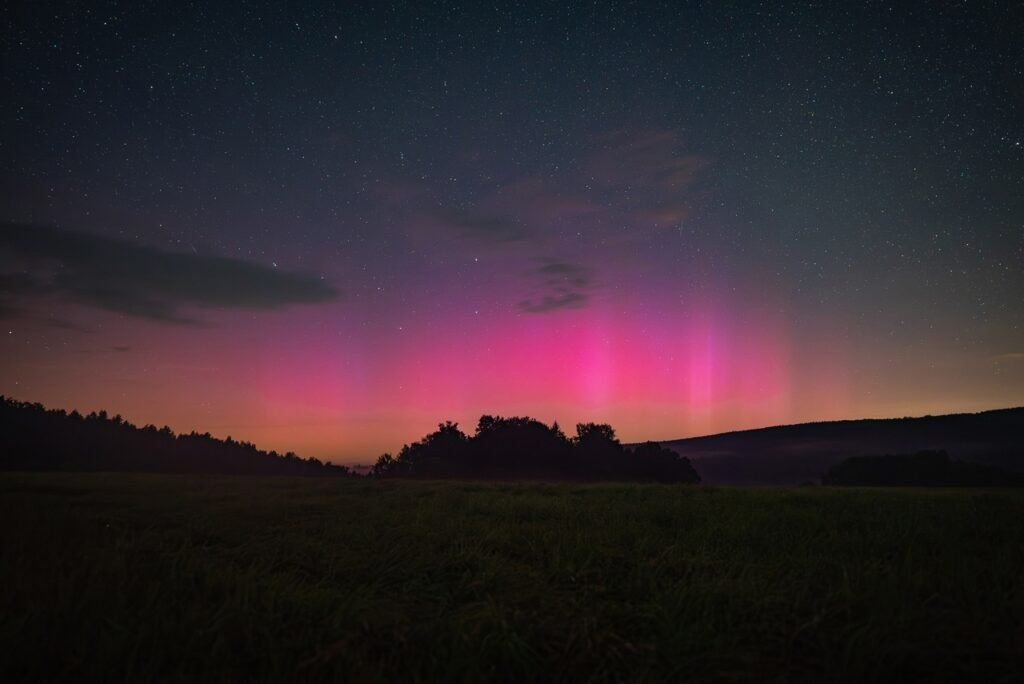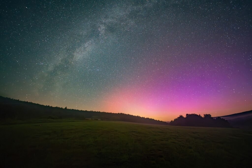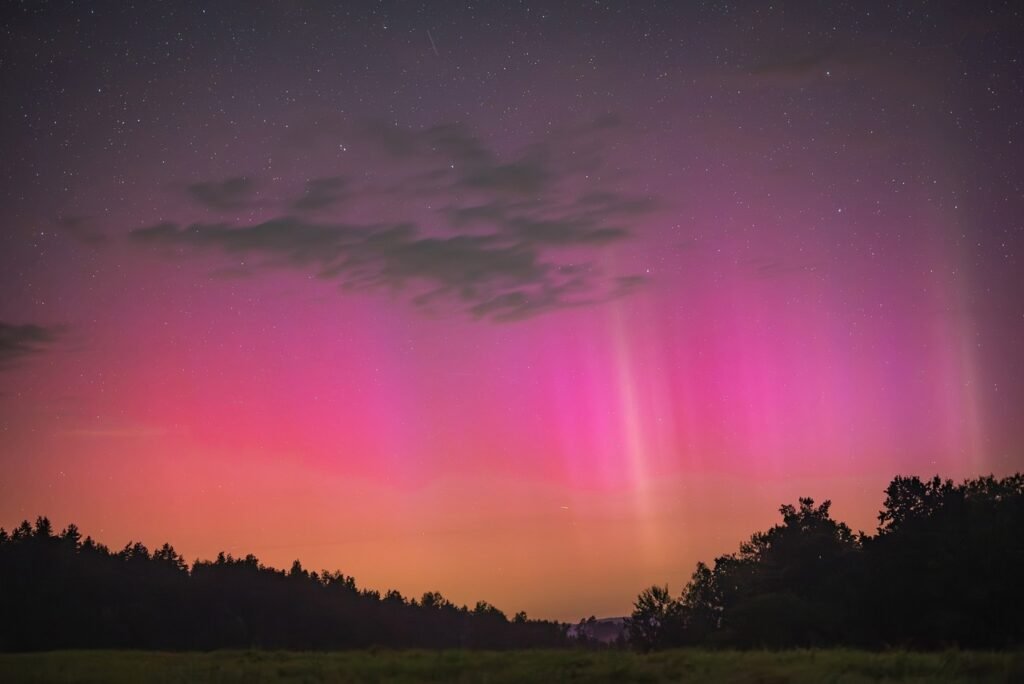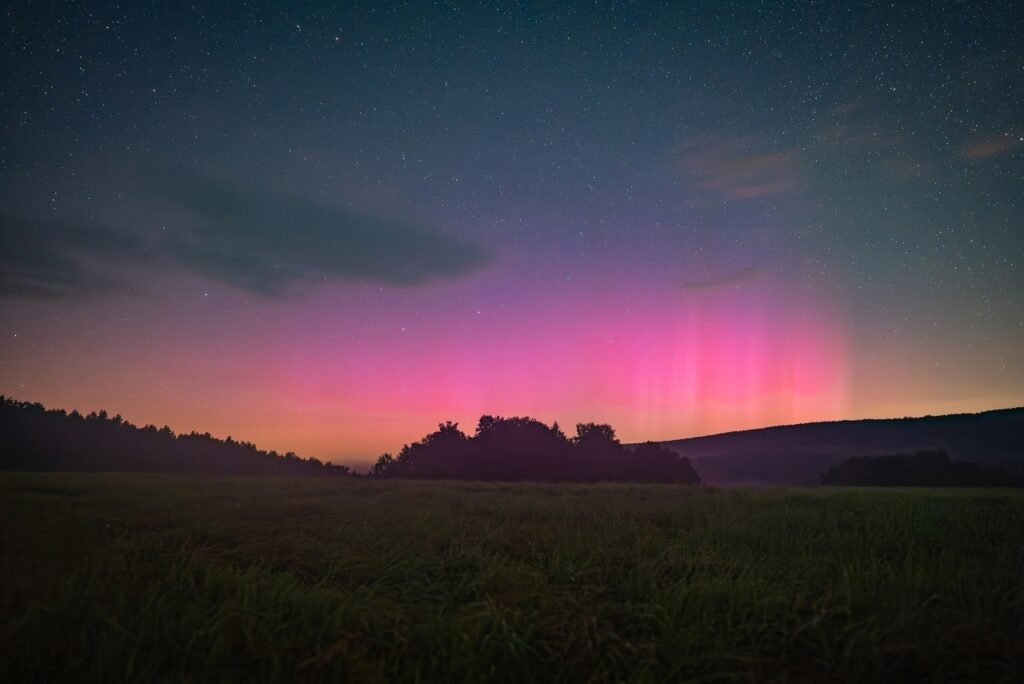 Прошедшая ночь была настоящим праздником для любителей астрономии и стала особенно удачной для тех, кто следил за небесными явлениями. Метеоры Персеид, которые приближаются к своему пику активности, пересекались с завораживающим светом северного сияния. Изначально сияние было едва заметным, но к середине ночи его яркость значительно возросла, позволяя насладиться зрелищем в полной мере.