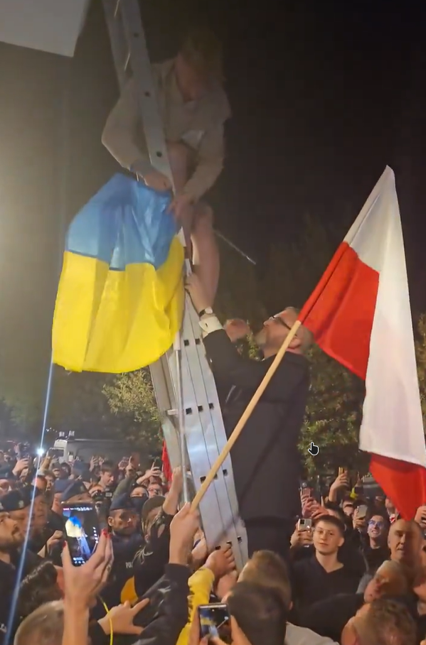 Браун поблагодарил «пана Кацпера» за снятие флага и заверил, что он будет передан украинским дипломатическим службам в Польше.