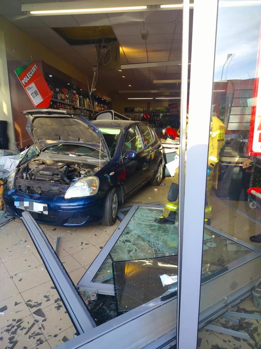 2 человека получили ранения в результате инцидента, произошедшего в Старе-Оборжиске недалеко от Косьцяна (Великопольское воеводство) — легковой автомобиль с большой силой врезался в магазин.