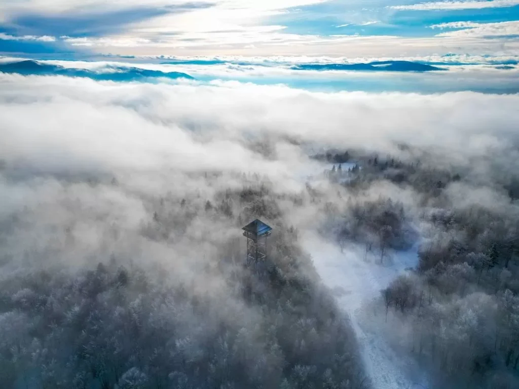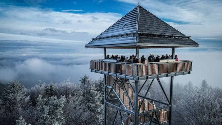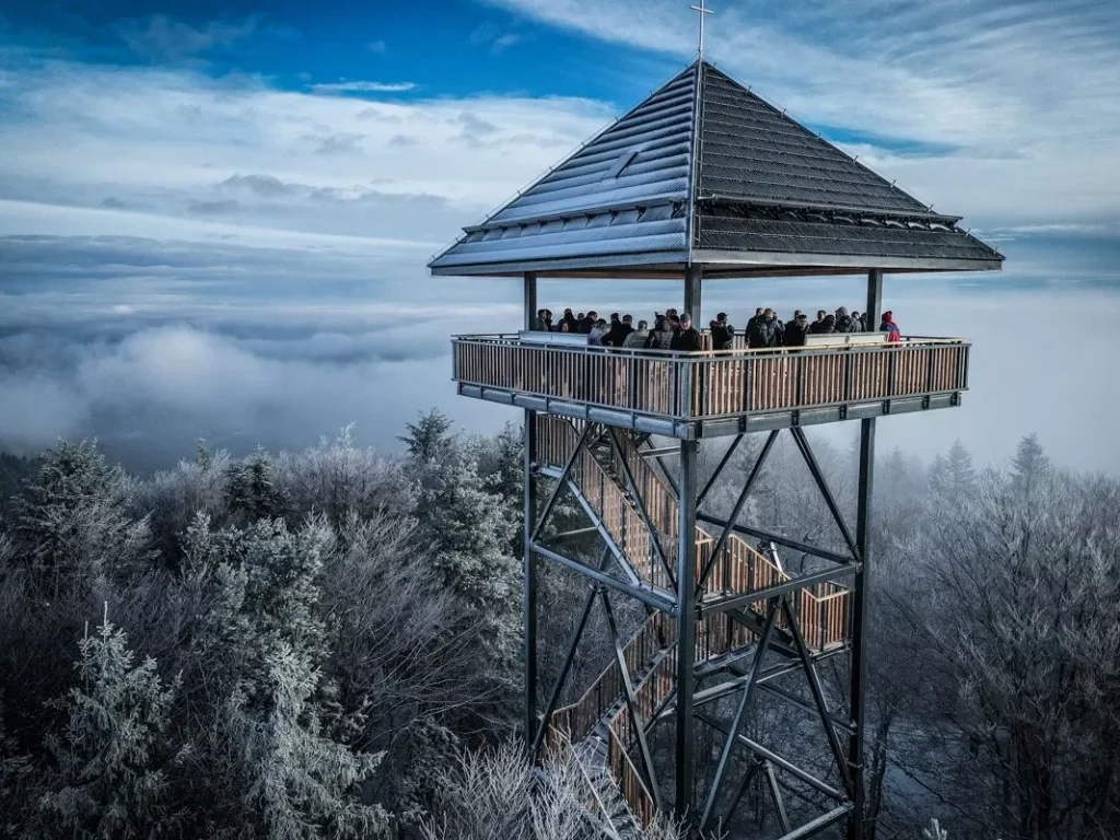 Туристы могут полюбоваться пейзажем, до сих пор скрытым за деревьями. С вершины башни можно увидеть Предгорья Висницкие и Рожновские, Бескиды, Горцы, Татры и Краков! Чтобы каждый мог насладиться прекрасной панорамой в комфортных условиях, наверху объекта установлена крытая терраса площадью 64 квадратных метра. Строительство башни обошлось в 1,6 млн злотых.