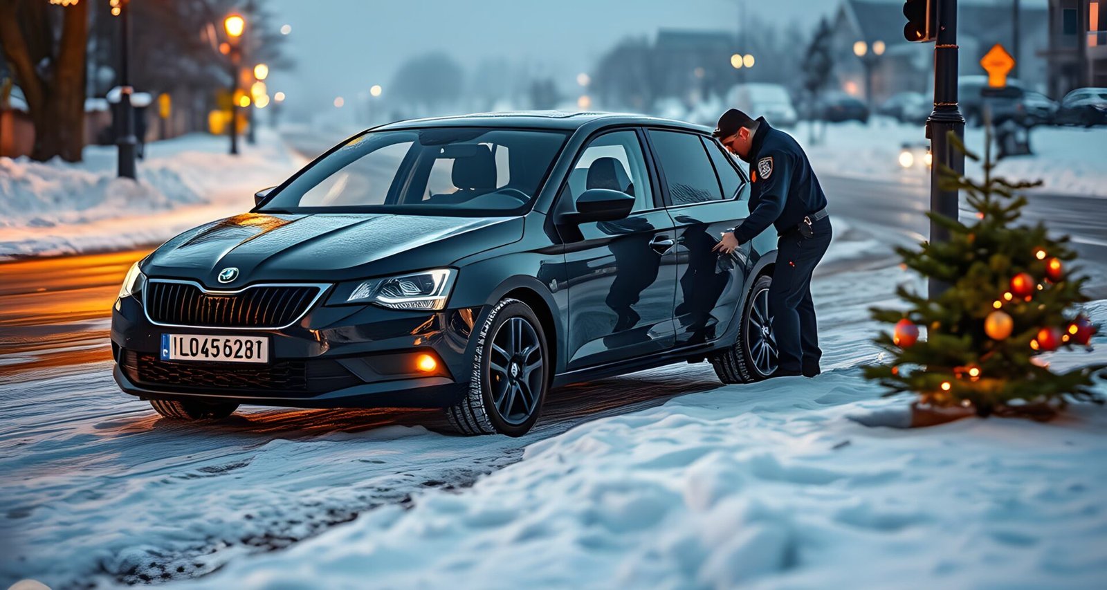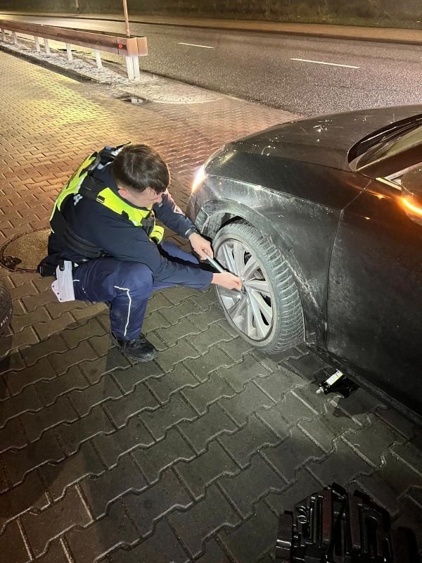 Инцидент произошёл в предрождественский вечер. Во время патрулирования внимание сотрудников дорожной полиции привлёк автомобиль Skoda, который медленно двигался с включенной аварийной сигнализацией. Остановив машину, офицеры выяснили, что у автомобиля было пробито переднее левое колесо, а водитель, девушка, оказавшаяся в подобной ситуации впервые, не знала, как самостоятельно справиться с проблемой.