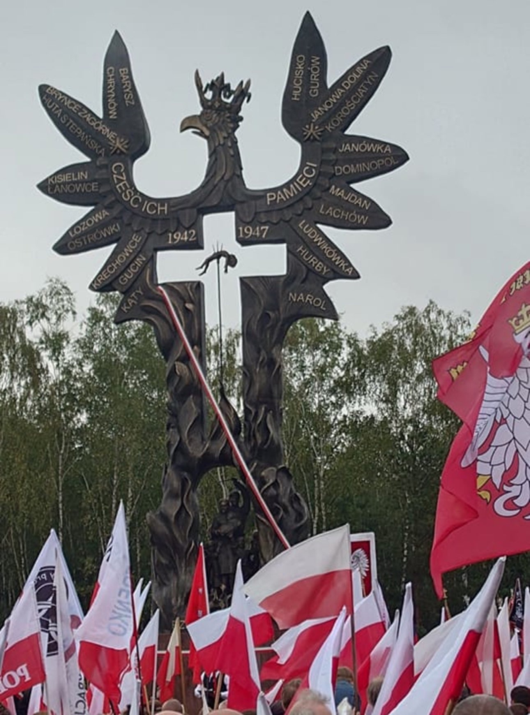 Сразу после этого скульптуру освятили, а присутствовавшие возложили к памятнику цветы и венки в связи с годовщиной так называемого Кровавого воскресенья — кульминационного этапа геноцида поляков украинскими националистами.