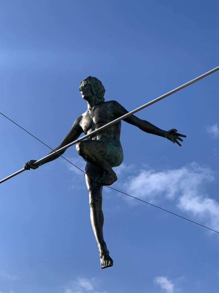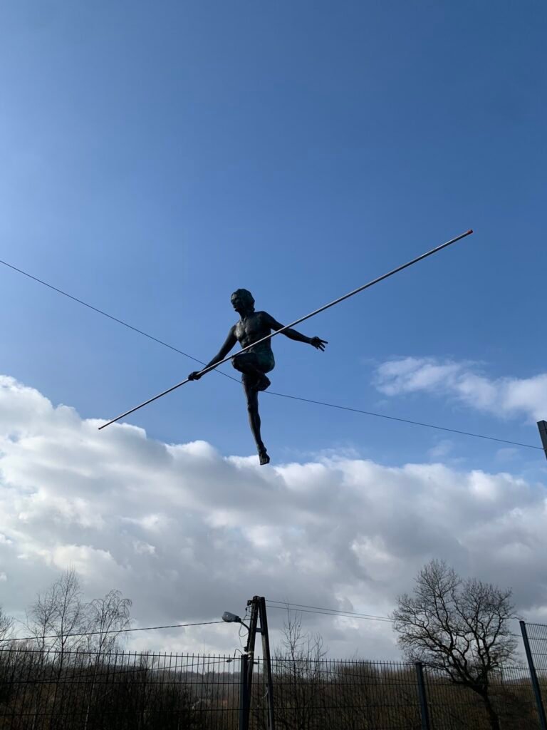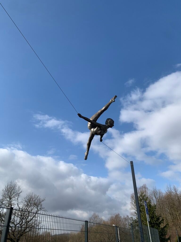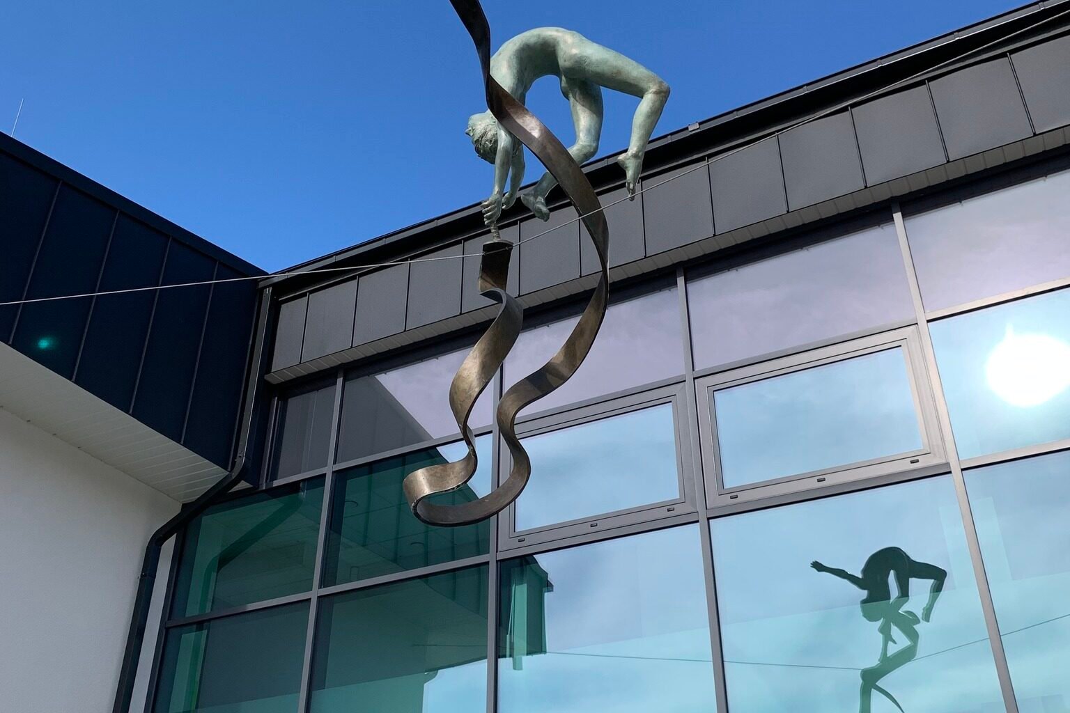 «Есть гимнастка, которая показывает, как довести наше тело до высшей эффективности, канатоходец и маленькая гимнастка с кушаком (ленточка). Это портрет моей внучки, которая некоторое время тренировалась. В то время я смотрел, сколько красоты исходит от этих детей и молодых людей, занимающихся художественной гимнастикой, от больших достижений, полученных в результате большой работы над собой», — прокомментировал скульптор.