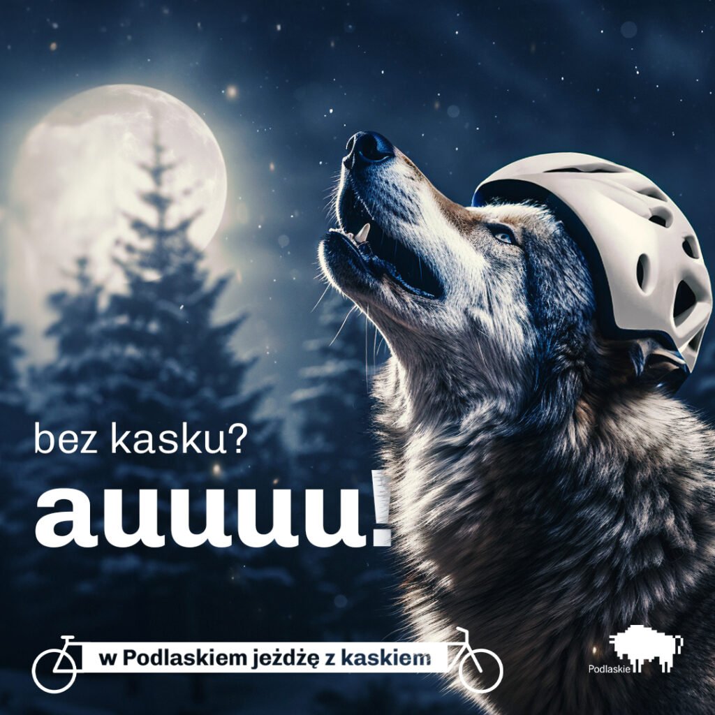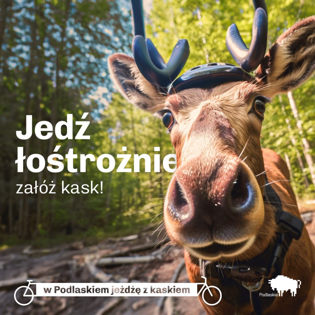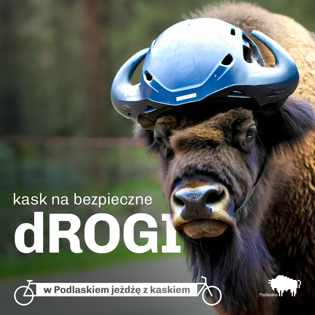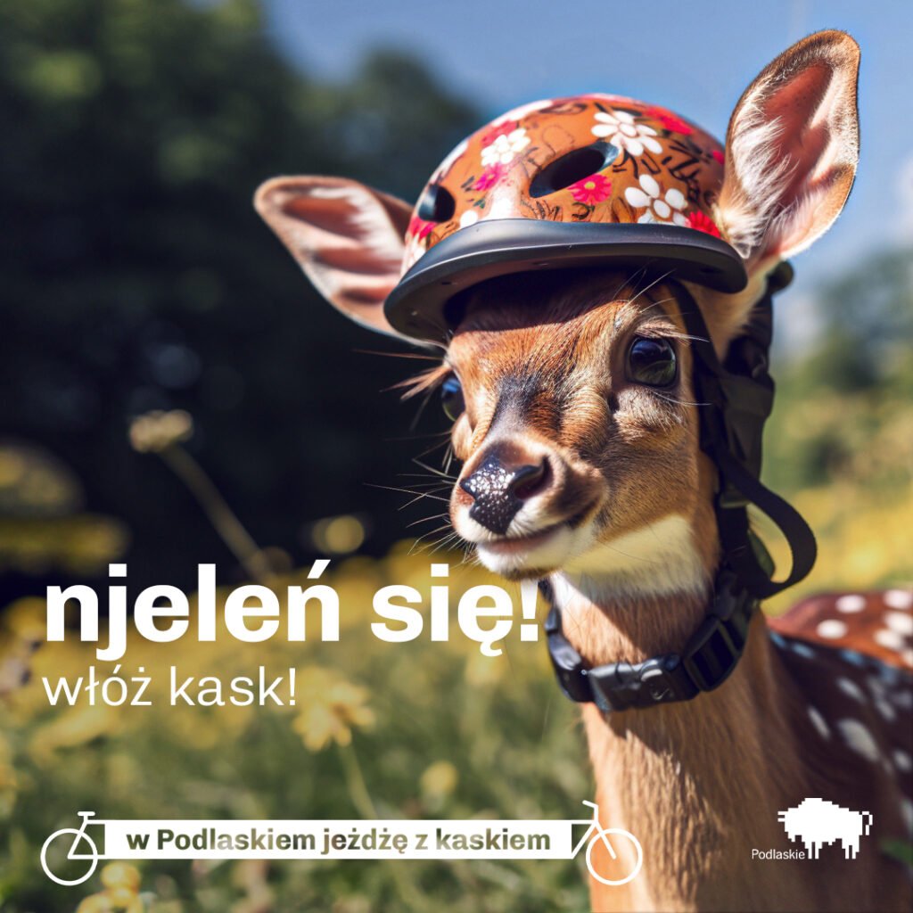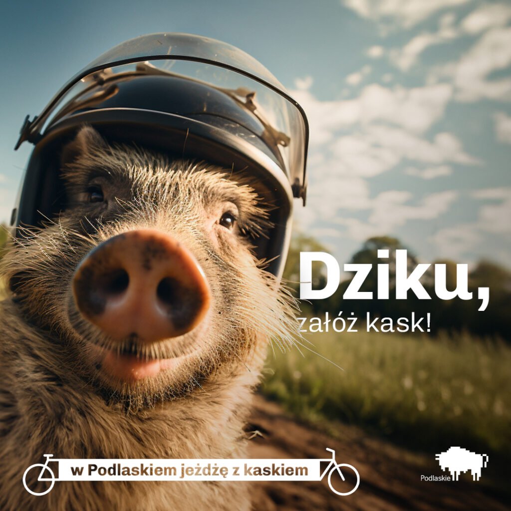 В Подляском воеводстве запустили кампанию, напоминающую о том, как важно для велосипедистов носить шлем на голове. Вместо скучных плакатов и лозунгов, создатели кампании при помощи нейросетей сделали креативные фотографии животных в шлеме.