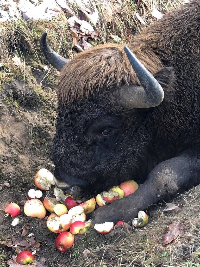 — В субботу, 25 ноября, около 14:30 я отправилась на прогулку в лес. Примерно в 1,5 км от основной дороги на Рокитно, у пожарной дороги № 12, мы с напарником заметили что-то лежащее в канаве. Мы подошли ближе и увидели, что это зубр. Увидев нас, он не встал, и мы решили, что с ним что-то не так. Тогда мы попытались подойти ещё ближе. Но зубр только шевелил головой», — рассказывает Моника Данилюк.
