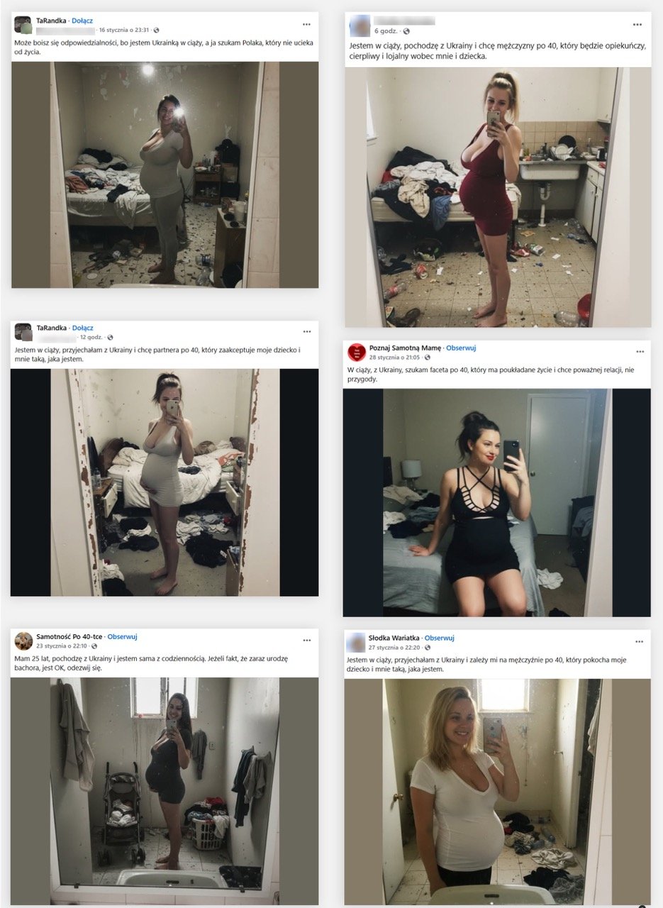 В польских социальных сетях появляются фейковые объявления о знакомствах. Их размещают привлекательные женщины, якобы украинского происхождения, которые ищут мужчин поляков. Они предлагают снять квартиру вместе и хвастаются тем, что «сбежали от войны», а некоторые пишут, что «у них есть муж в Украине».