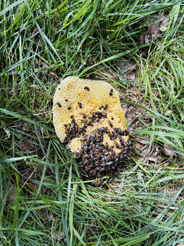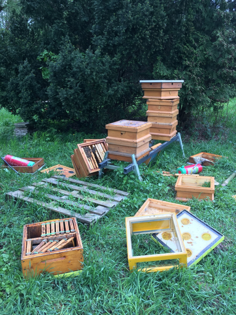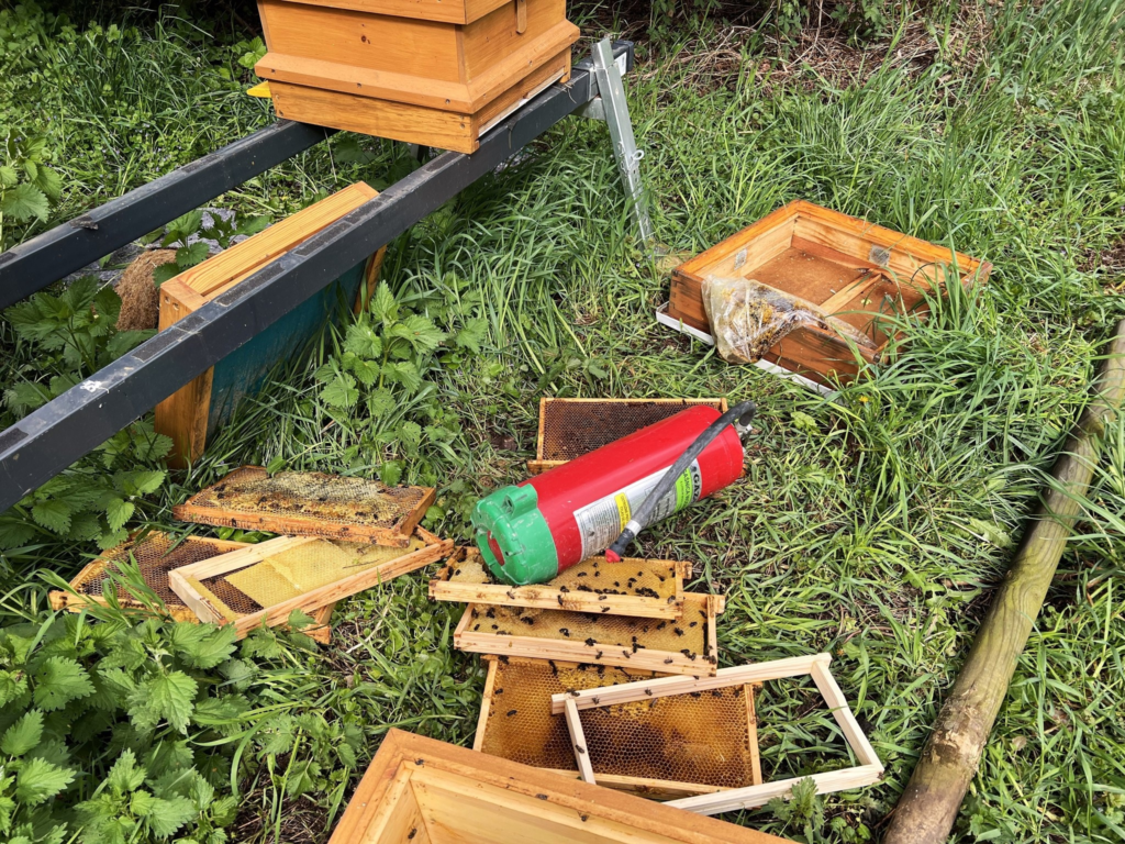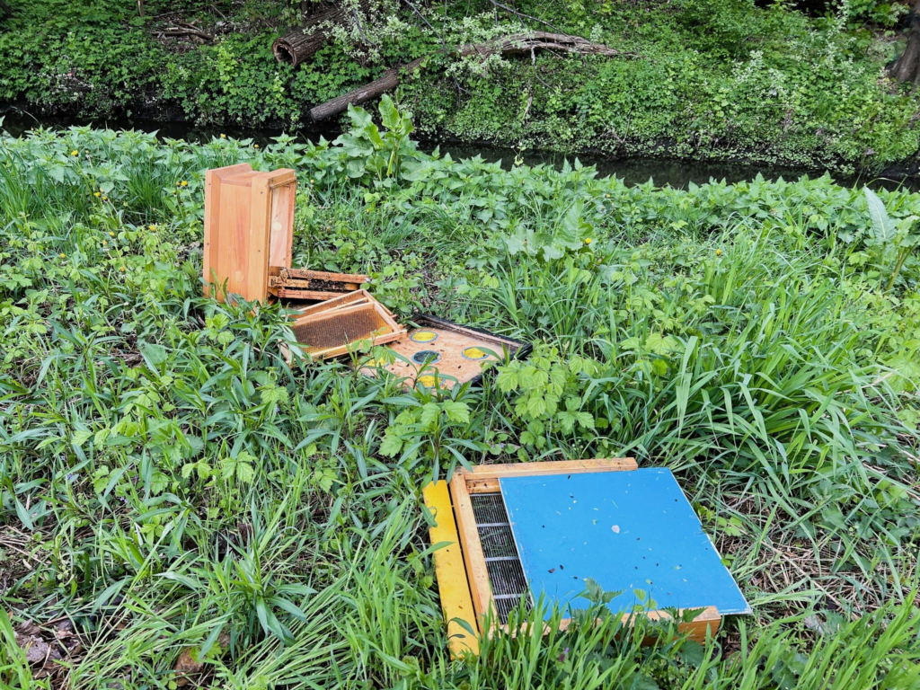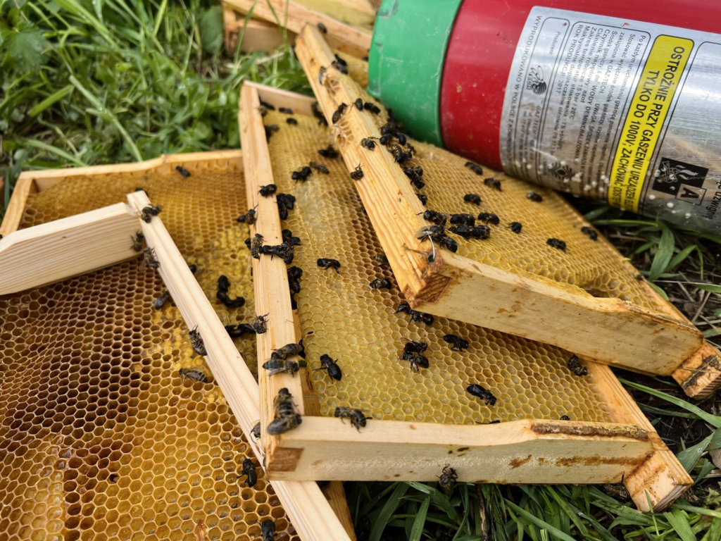 Сообщает, что для вскрытия ульев был использован огнетушитель. На месте преступления были найдены рамки из ульев и множество мёртвых пчёл. Администрация отмечает, что низкой температуры и ливня, прошедшего ночью в Варшаве, хватило для того, чтобы погибло нескольких семейств пчёл.