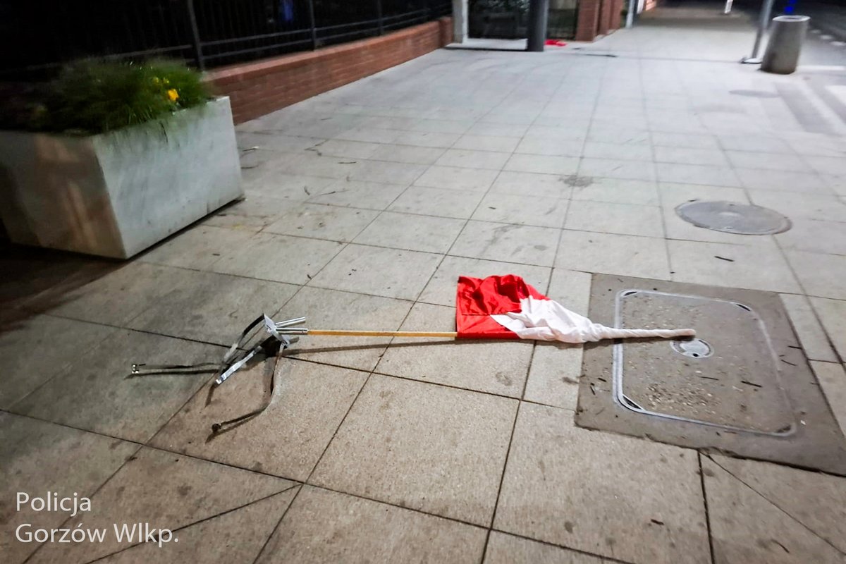 В ночь c 1 на 2 мая в центре Гожува-Велькопольского полиция задержала 22-летнего мужчину, который сорвал польские флаги у входа в парк. Инцидент был зафиксирован системой городского видеонаблюдения.
