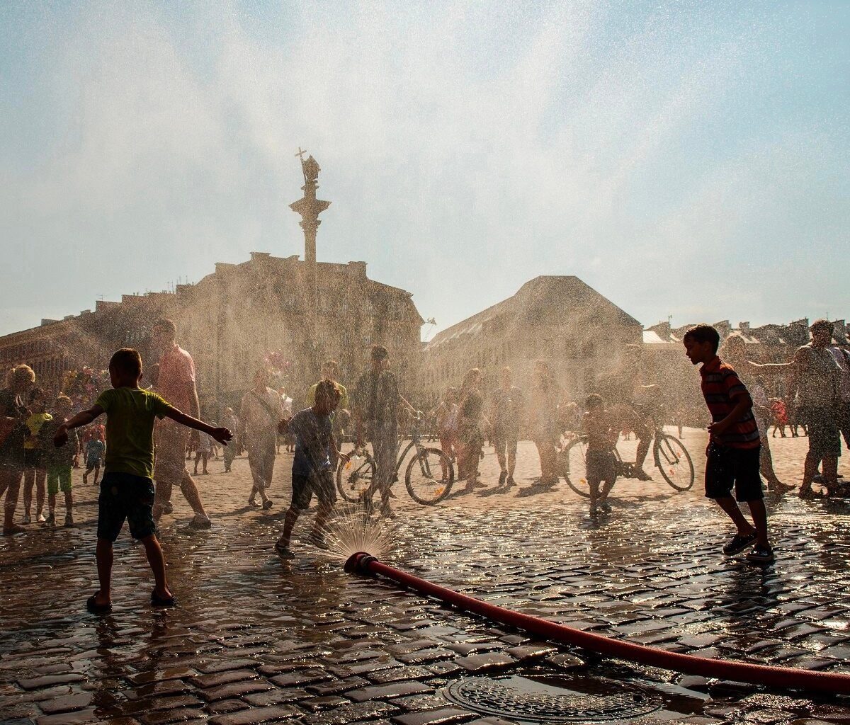 С началом астрономического и календарного лета Варшаву накрыла жара. На этой неделе температура может подняться выше 30 градусов по всей Польше. Чтобы охладить жителей Варшавы, в городе поставили водяные завесы, которые увлажняют воздух.
