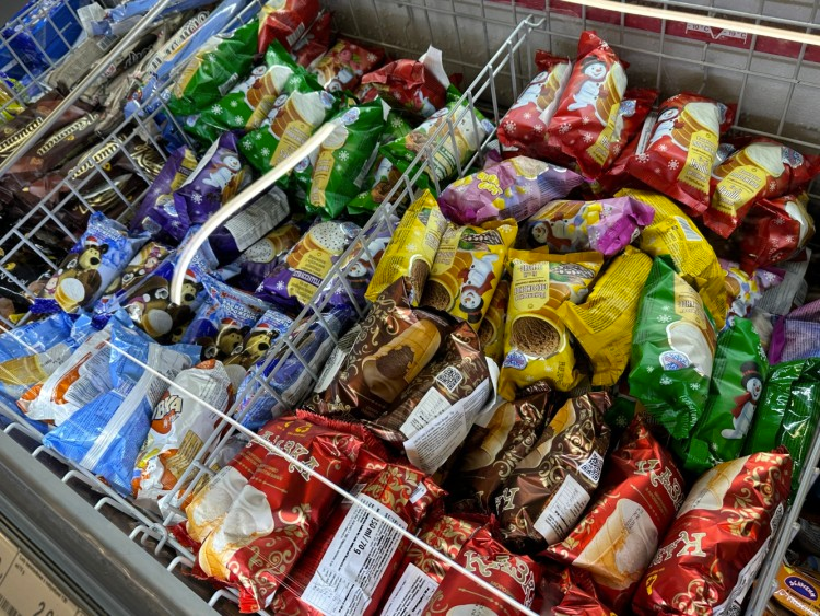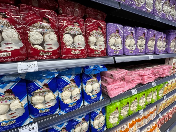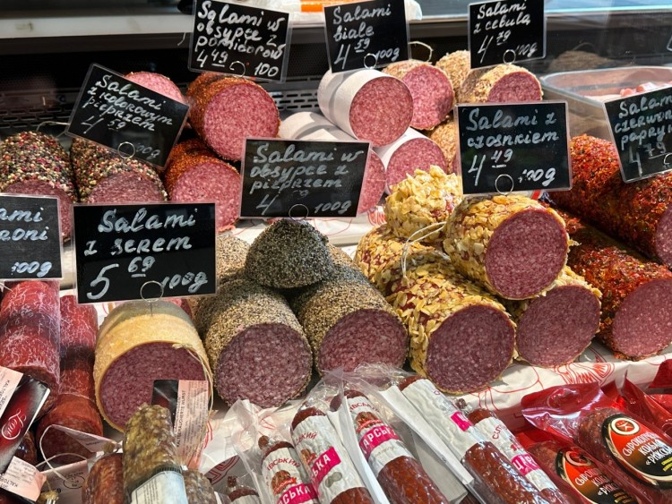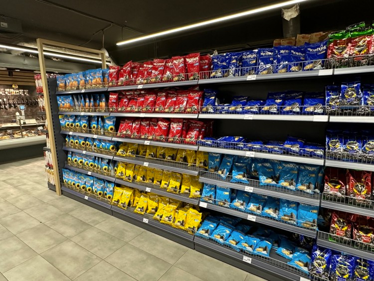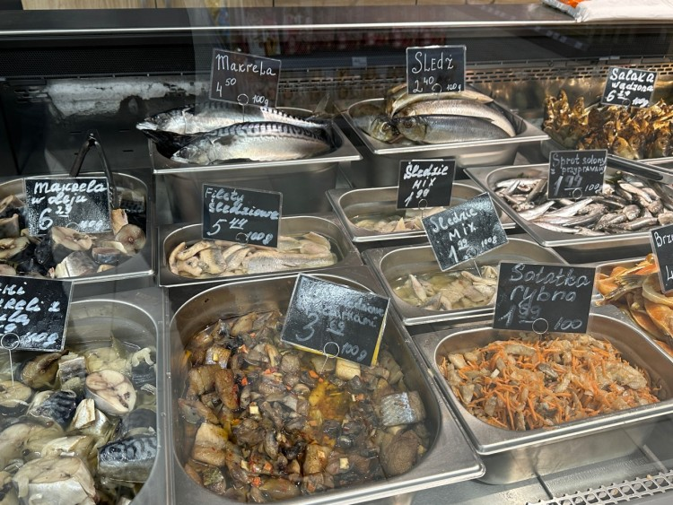 Войдя в магазин можно заметить, что покупателей практически нет, хотя товаров достаточно. Возможно, всё дело в ценах: 1,5-литровый напиток стоит 13 злотых, упаковки замороженных пельменей 1 кг — 31 злотых, сушеная рыба — 12 злотых, зефир — около 14 злотых.