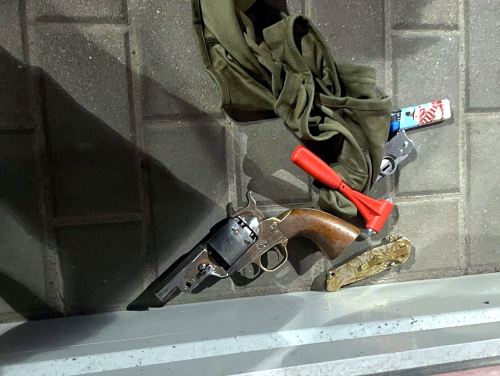 При задержании он выбросил предмет, напоминающий огнестрельное оружие. Кроме того, при себе у 24-летнего мужчины было 2 ножа, молоток и балаклава.