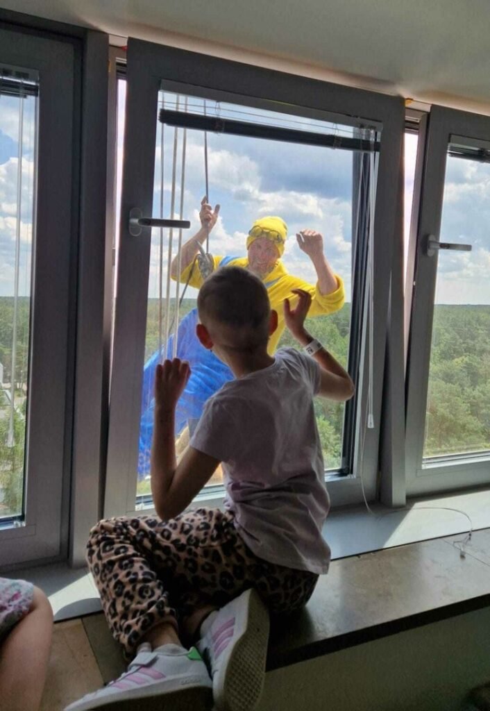 В пятницу, 14 июня, в Centrum Zdrowia Dziecka в Варшаве прошла необычная акция, направленная на то, чтобы вызвать улыбку на лицах маленьких пациентов и их родителей. Альпинисты и пожарные, одетые в костюмы супергероев, животных и сказочных персонажей, спустились с крыши больницы, чтобы подарить детям незабываемые эмоции и поднять настроение маленьким пациентам.