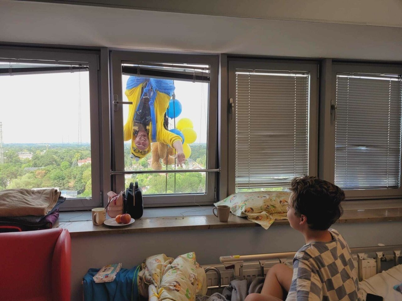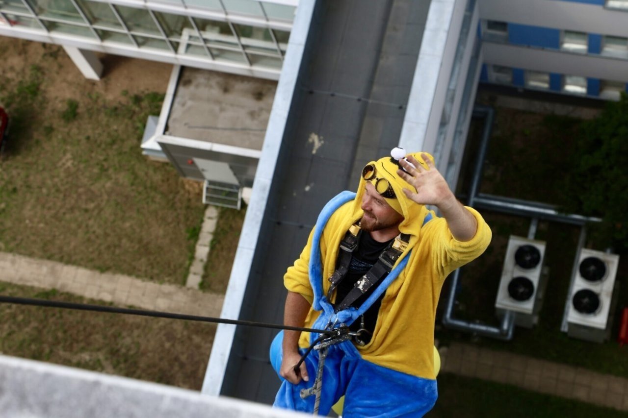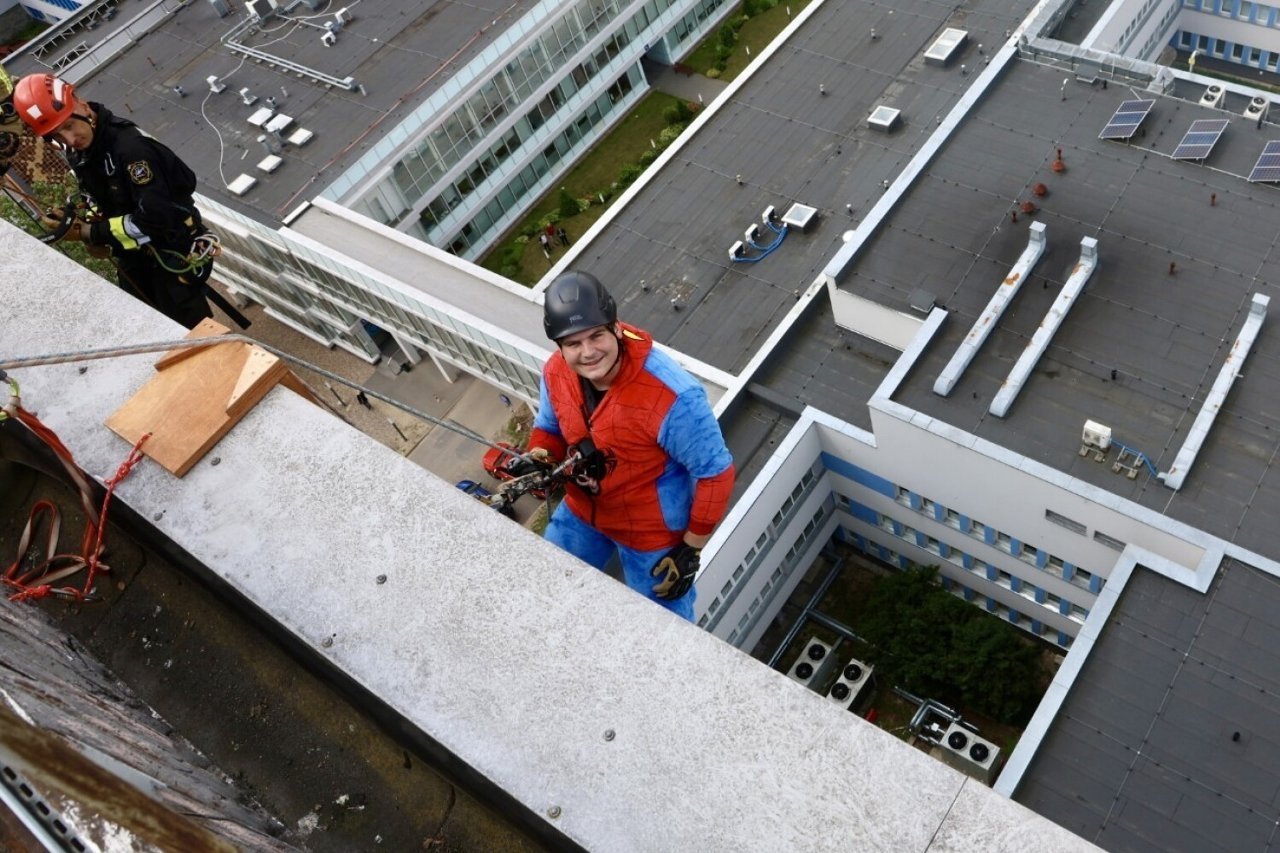 В пятницу, 14 июня, в Centrum Zdrowia Dziecka в Варшаве прошла необычная акция, направленная на то, чтобы вызвать улыбку на лицах маленьких пациентов и их родителей. Альпинисты и пожарные, одетые в костюмы супергероев, животных и сказочных персонажей, спустились с крыши больницы, чтобы подарить детям незабываемые эмоции и поднять настроение маленьким пациентам.