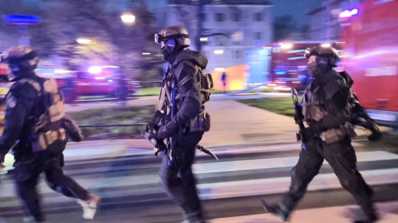 Когда сотрудники полиции прибыли на место, мужчина забаррикадировался в квартире на 7 этаже и не желал разговаривать. Сообщается, что при попытке провести переговоры с мужчиной с соседнего балкона, он якобы выстрелил в полицию. На место происшествия было вызвано антитеррористическое подразделение Главного управления полиции Варшавы. Квартал был оцеплен.