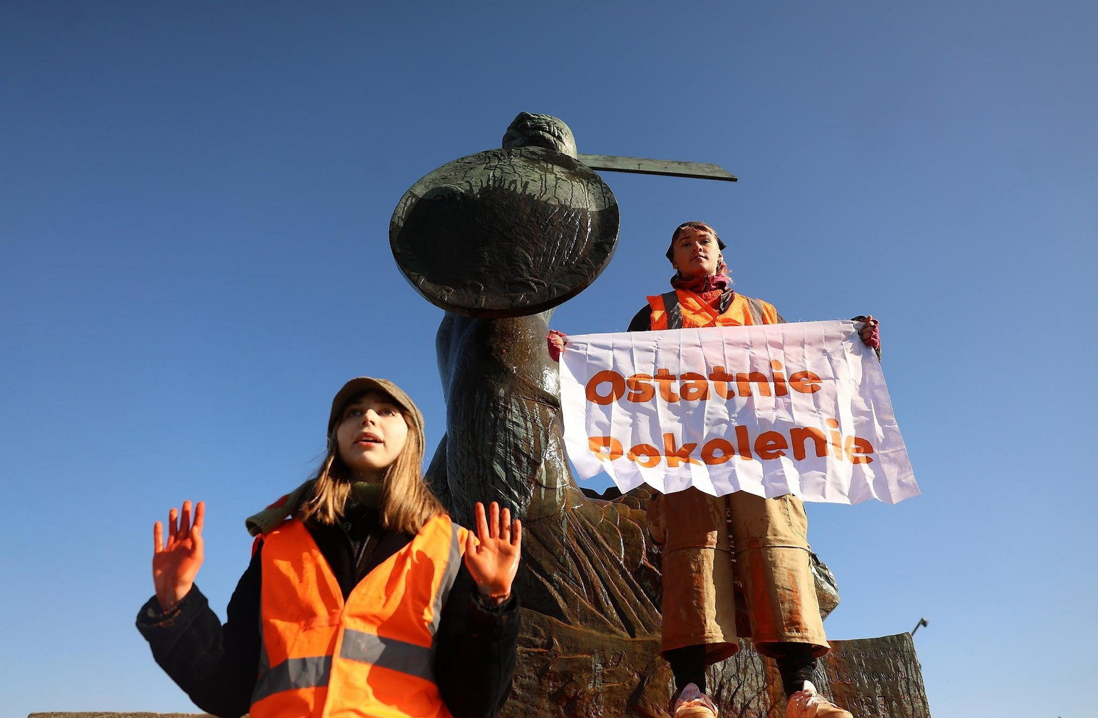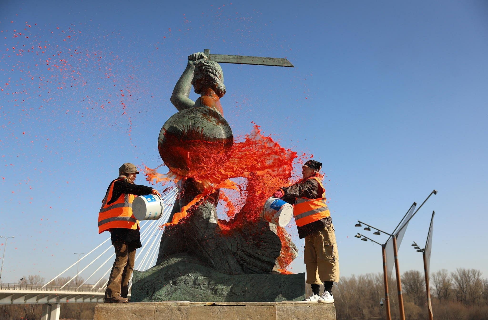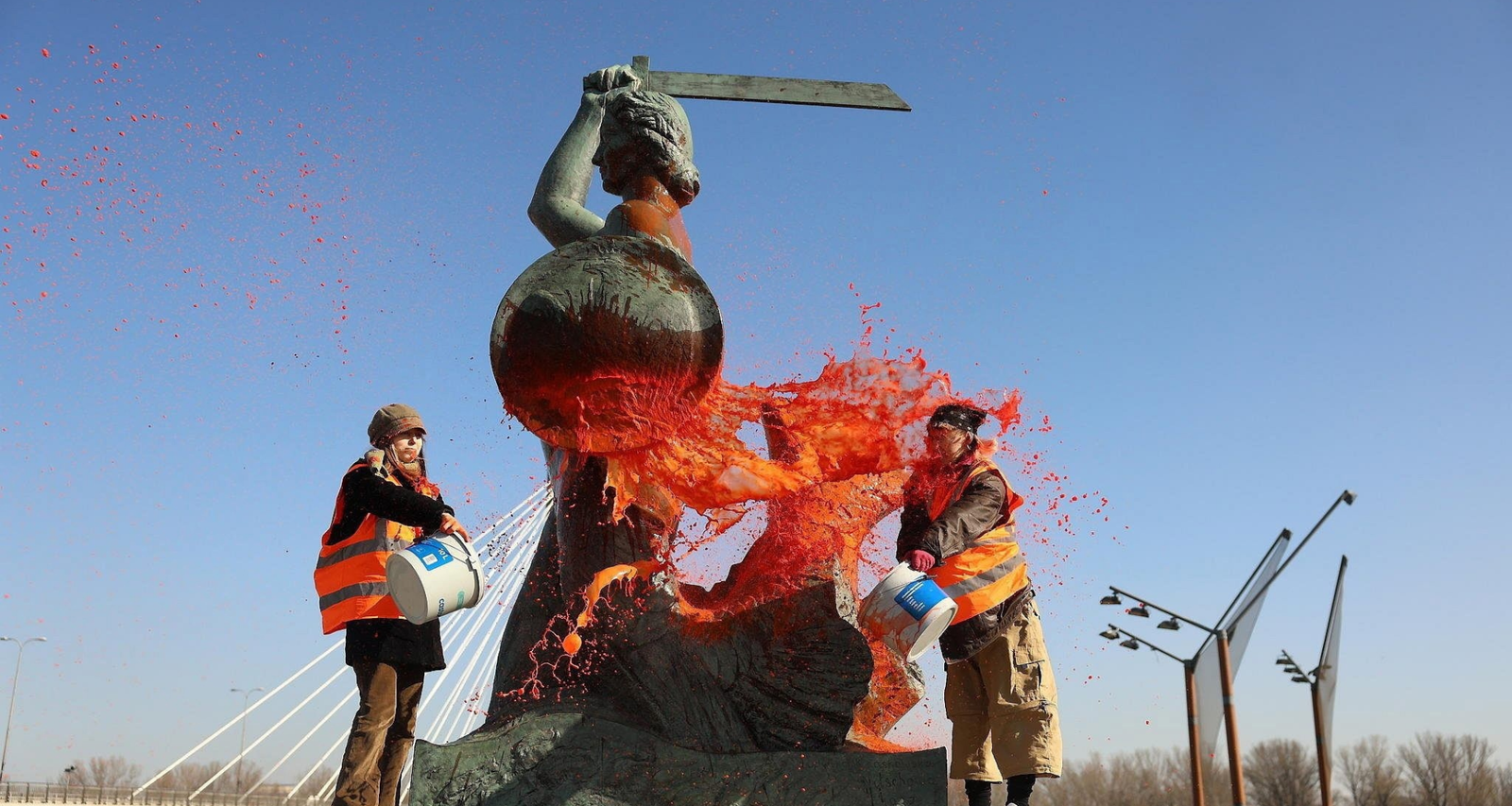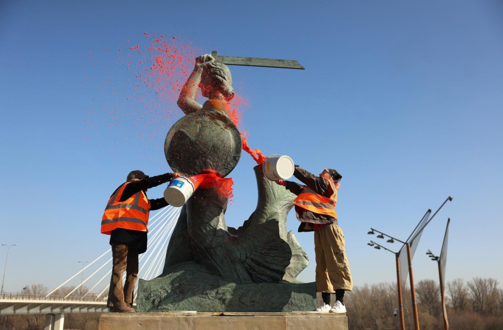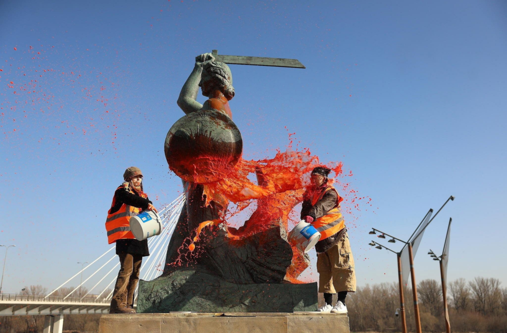8 марта климатические активисты из коллектива «Ostatnie Pokolenie» облили оранжевой краской памятник «Syreny».